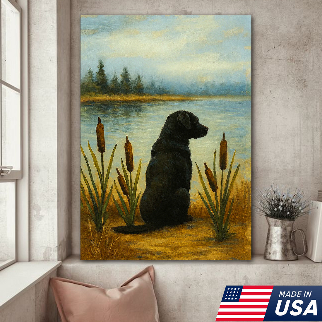 Black Labrador Hunting Dog Canvas Wall Art β Rustic Cabin Lodge Lake Decor, Gift For Hunters