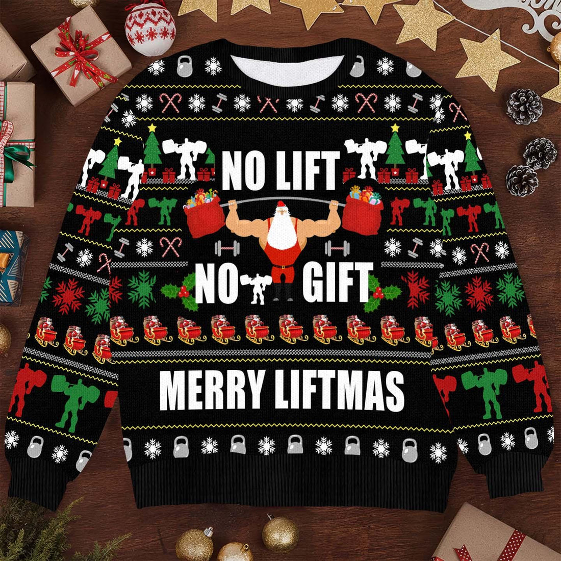 No Lift No Gift Ugly Christmas Sweater - Merry Liftmas Fitness Holiday - Perfect Gift for Gym and Weightlifting Fans