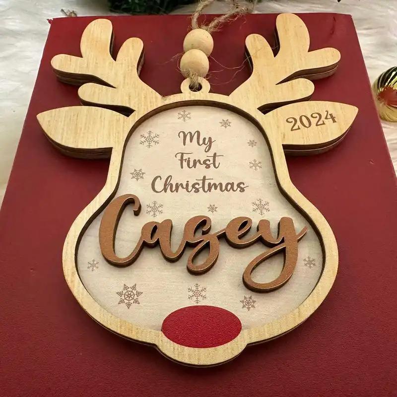 Reindeer Wooden Ornament, Reindeer Stocking Tags, Personalized Christmas Ornaments Gift for Family, Baby's First Christmas, Kids Gift