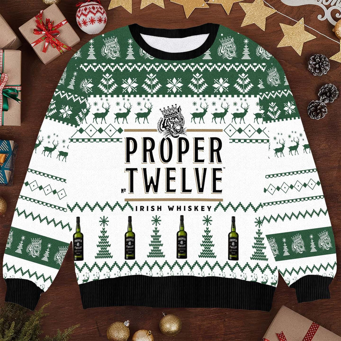Proper Twelve Irish Whiskey Ugly Christmas Sweater - Festive Holiday Knit for Whiskey Lovers - Funny and Stylish Christmas Jumper