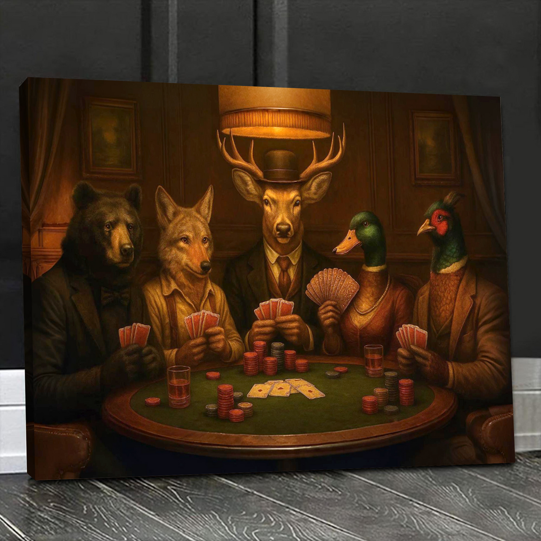 Western Poker Night Animal Canvas Wall Art β Rustic Cowboy Bar Decor for Gamers & Hunters