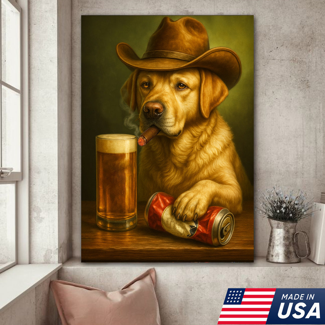 Funny Cowboy Labrador Dog Canvas Wall Art β Rustic Beer Bar Decor Gift for Hunters, Lodge and Cabin