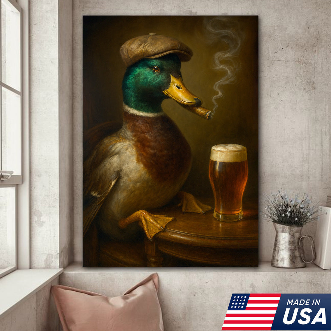 Mallard Duck Gentle Beer Smoking Canvas β Funny Rustic Wall Art for Hunters, Cabin, Bar & Man Cave