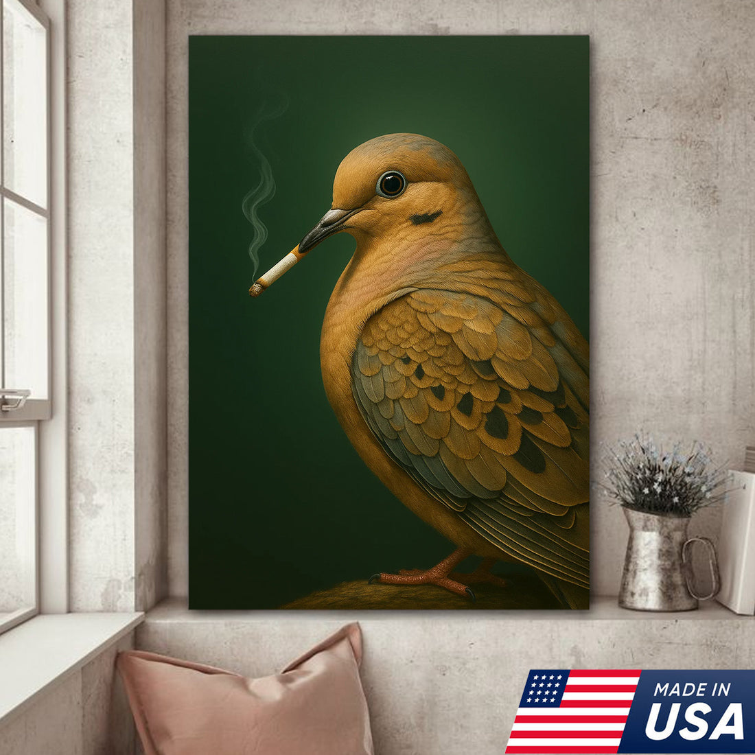 Mourning Dove Wall Art Canvas - Rustic Wildlife Cabin Decor - Unique Hunting Lodge Artwork