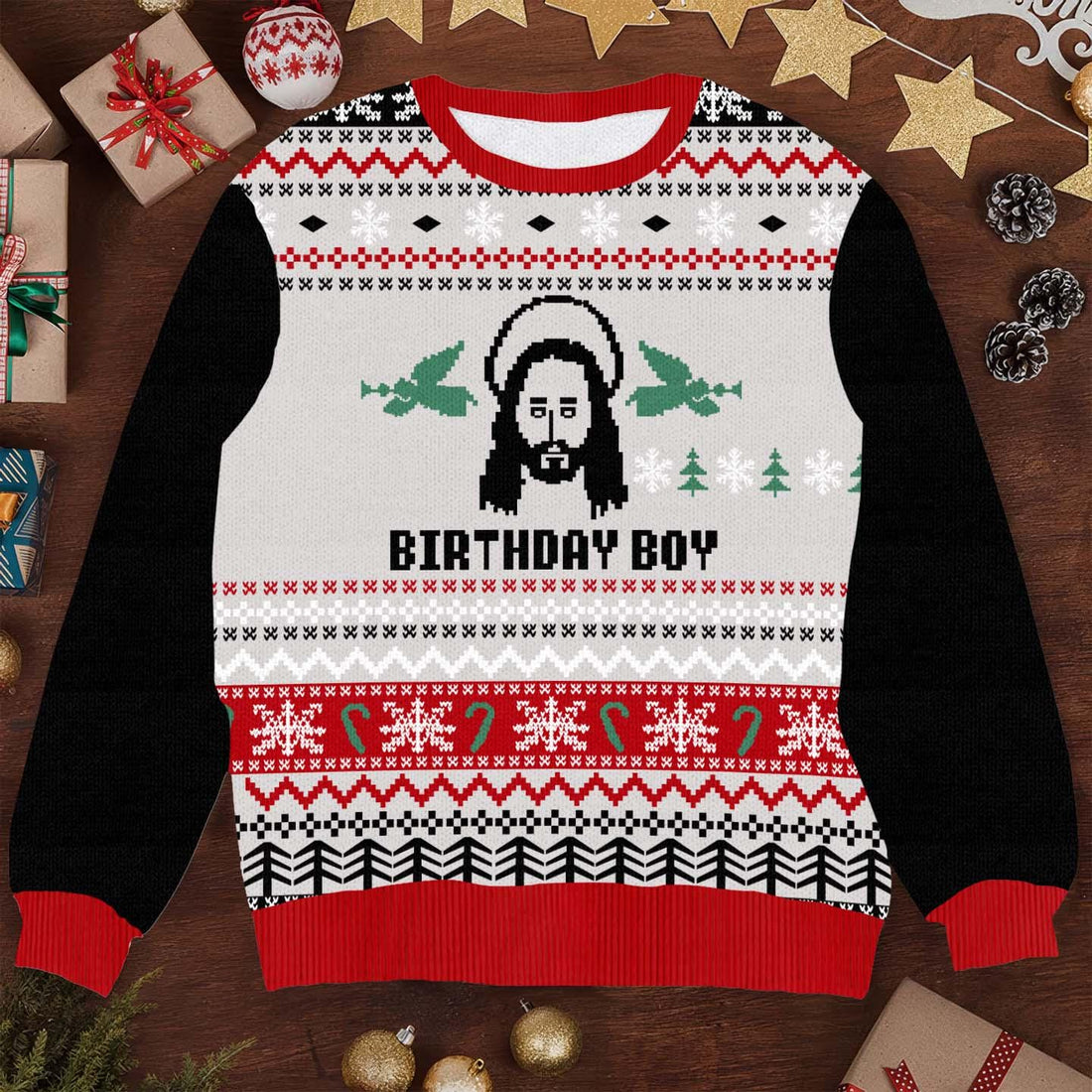 Birthday Boy Jesus Ugly Christmas Sweater - Funny Religious Holiday Knit - Festive Christmas Sweater for Men Women Celebration
