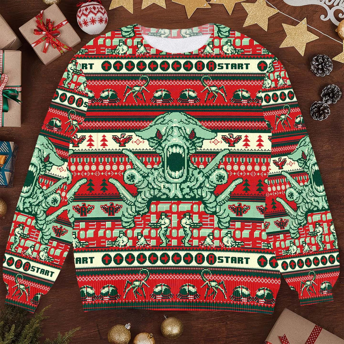 Contra Ugly Christmas Sweater - Retro Gamer Holiday Cheer, Pixel Art Design, Alien Boss, Festive Xmas Game Apparel