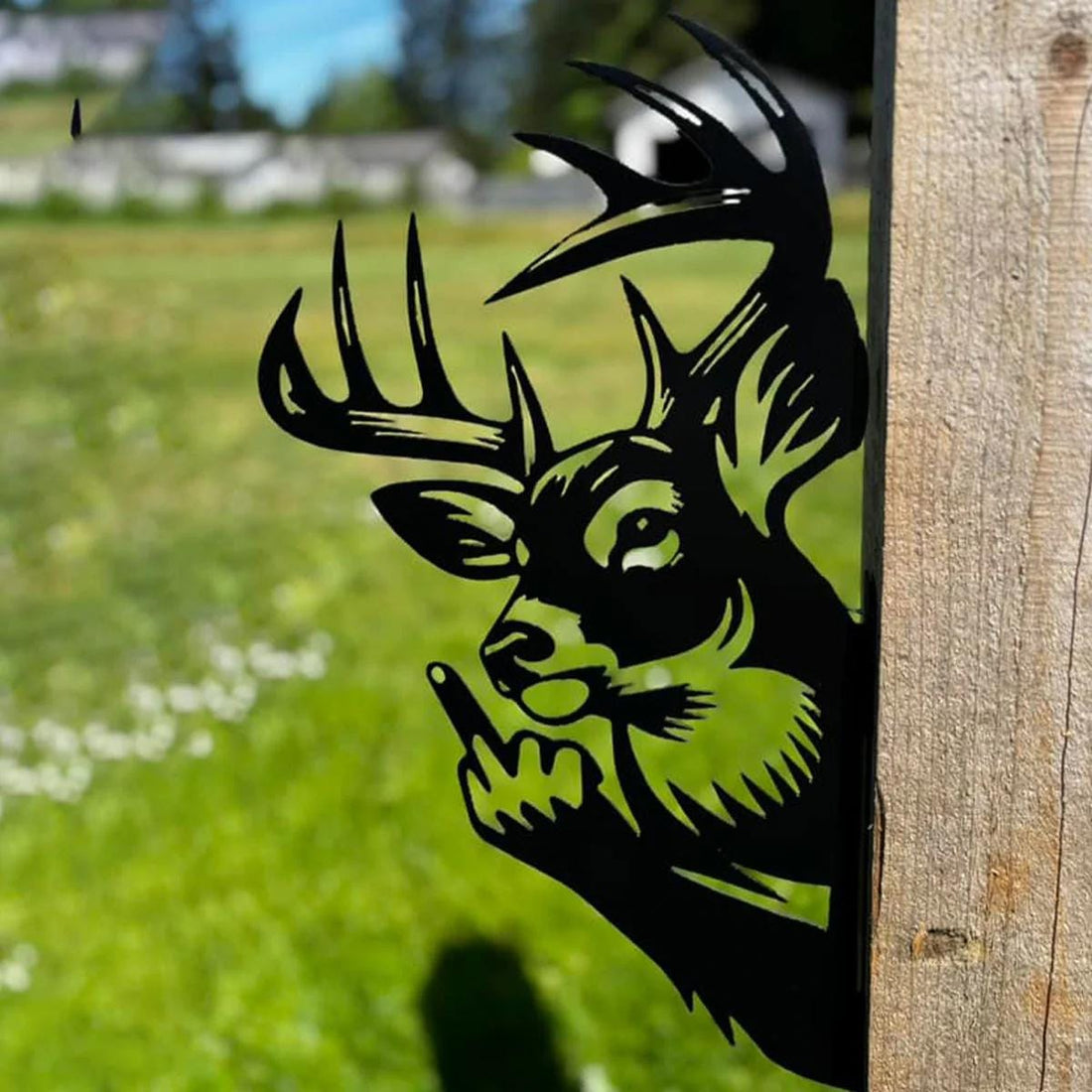 Peeping Deer Funny Finger Metal Sign Peek-A-Boo Flipping Off Deer Outdoor Deer Hunting Lover Camping Cabin Decor, Gift for Dad Papa Husband