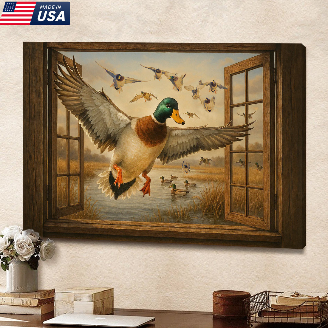 Flying Mallard Duck Canvas Wall Art, Rustic Hunting Wildlife Decor, Perfect Gift for Hunters & Outdoor Lovers
