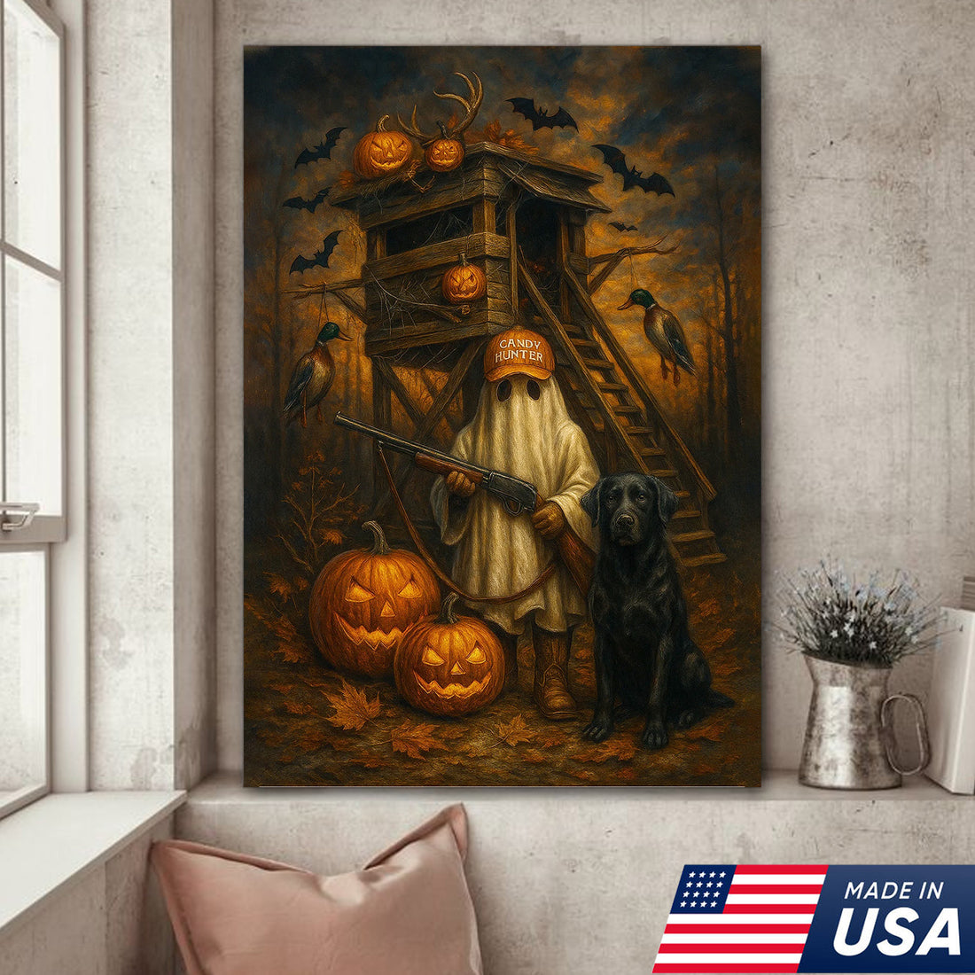 Halloween Canvas Wall Art β Ghost Hunter and Black Lab, Pumpkins, Bats and Ducks β Rustic Fall Farmhouse Hunting Decor