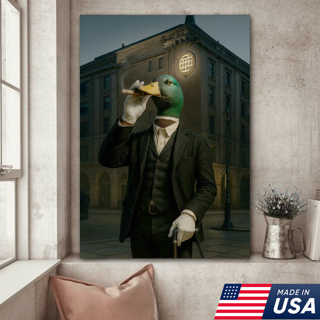 Mallard Gentleman Canvas β Duck in Suit Portrait, Vintage Noir Animal Wall Art for Office & Cabin