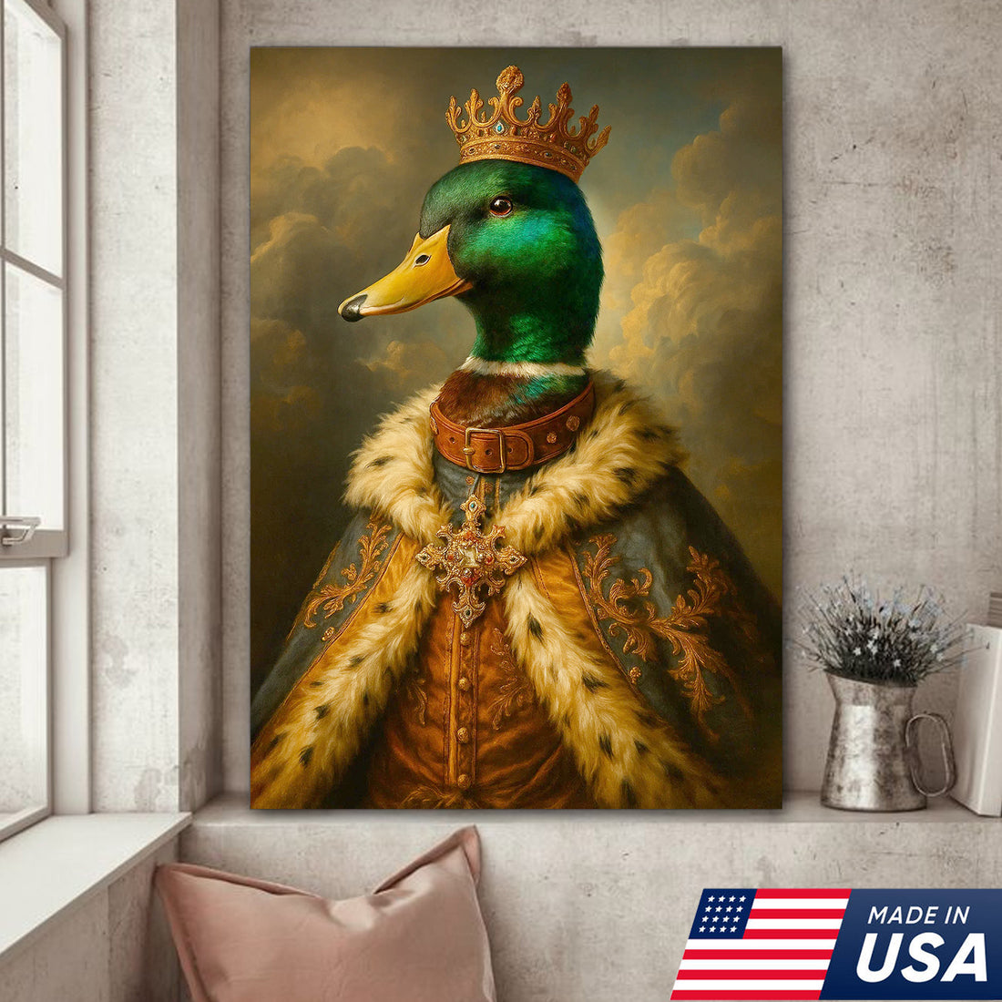Royal Mallard King Canvas β Crowned Duck Portrait Wall Art, Vintage Baroque Animal Print
