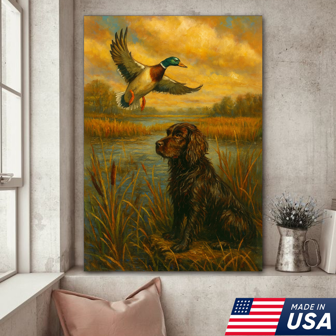Hunting Dog & Mallard Canvas Wall Art β Rustic Wildlife Painting Made in USA