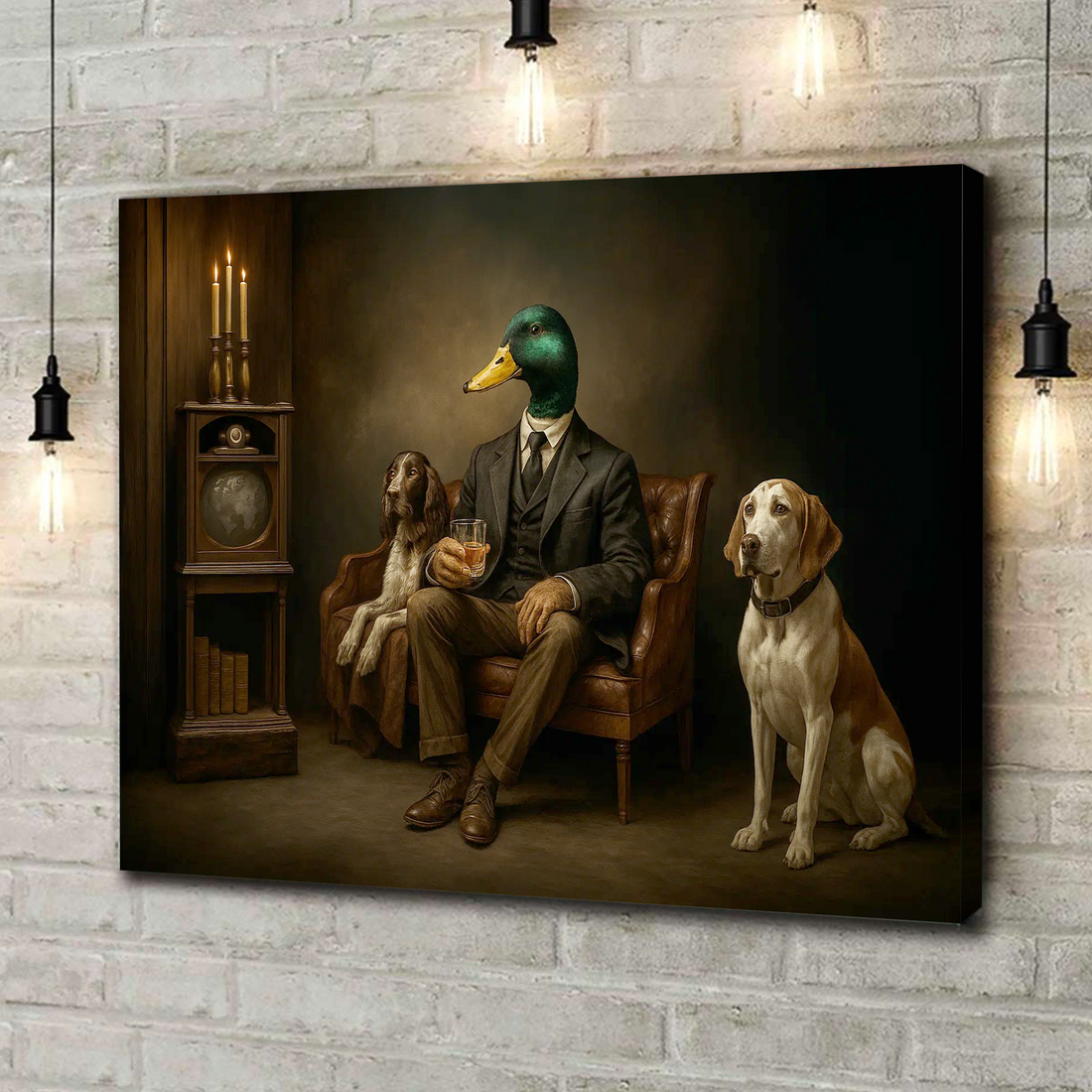 Gentleman Duck Canvas Wall Art β Rustic Whiskey Lounge & Hunting Lodge Decor, Man Cave Dog Lover Gift