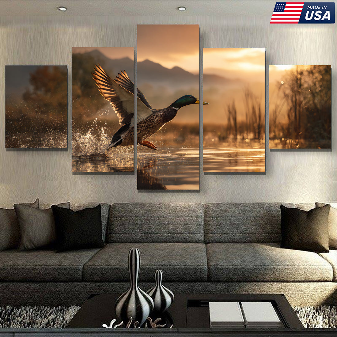 Flying Mallard at Dawn Canvas Wall Art Print for Hunters - Stunning 5-Panel Duck Canvas