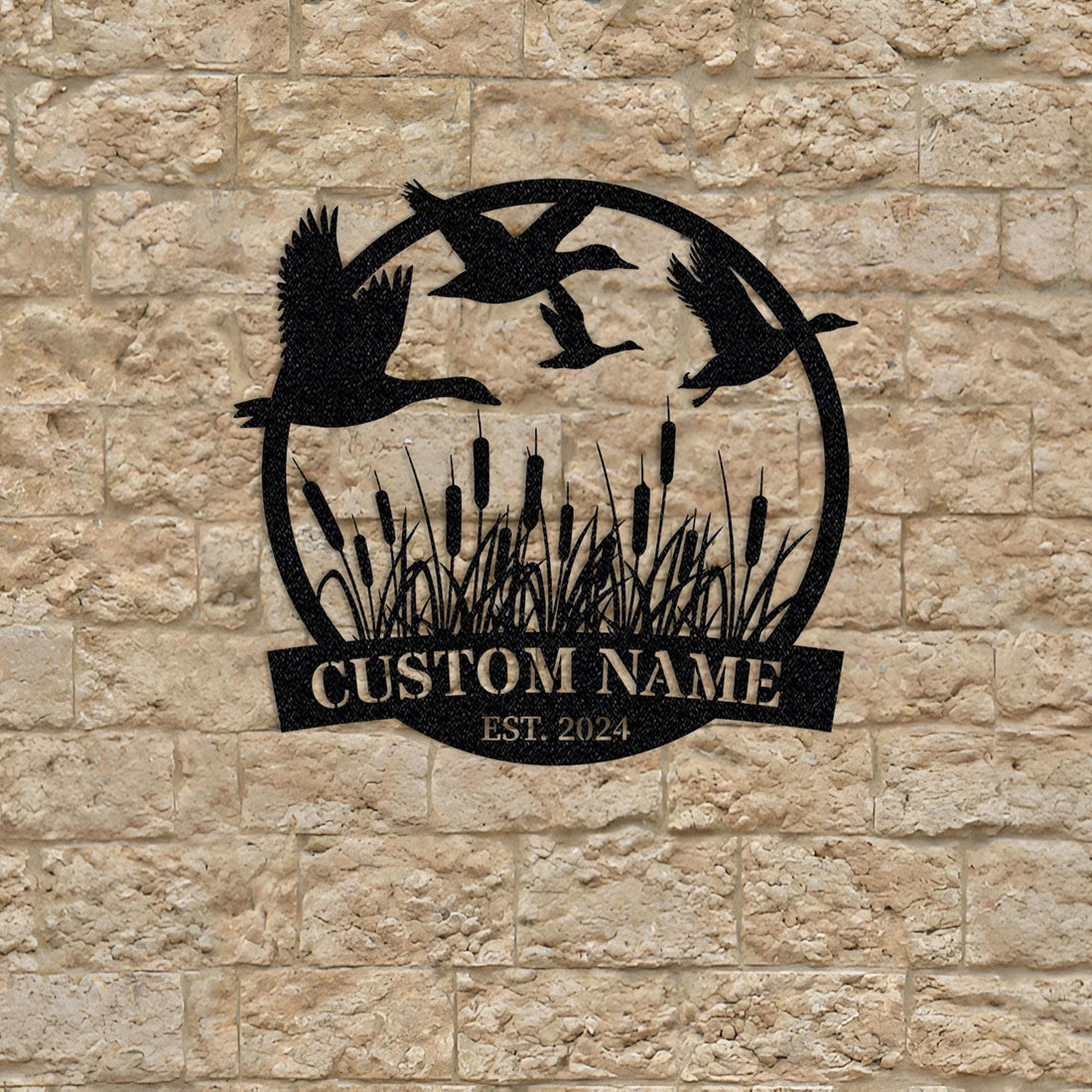Personalized Duck Hunting Metal Sign WITH LED/WITHOUT LED β Flying Waterfowl Wall Art, Rustic Lodge Decor, Custom Name Wildlife Sign