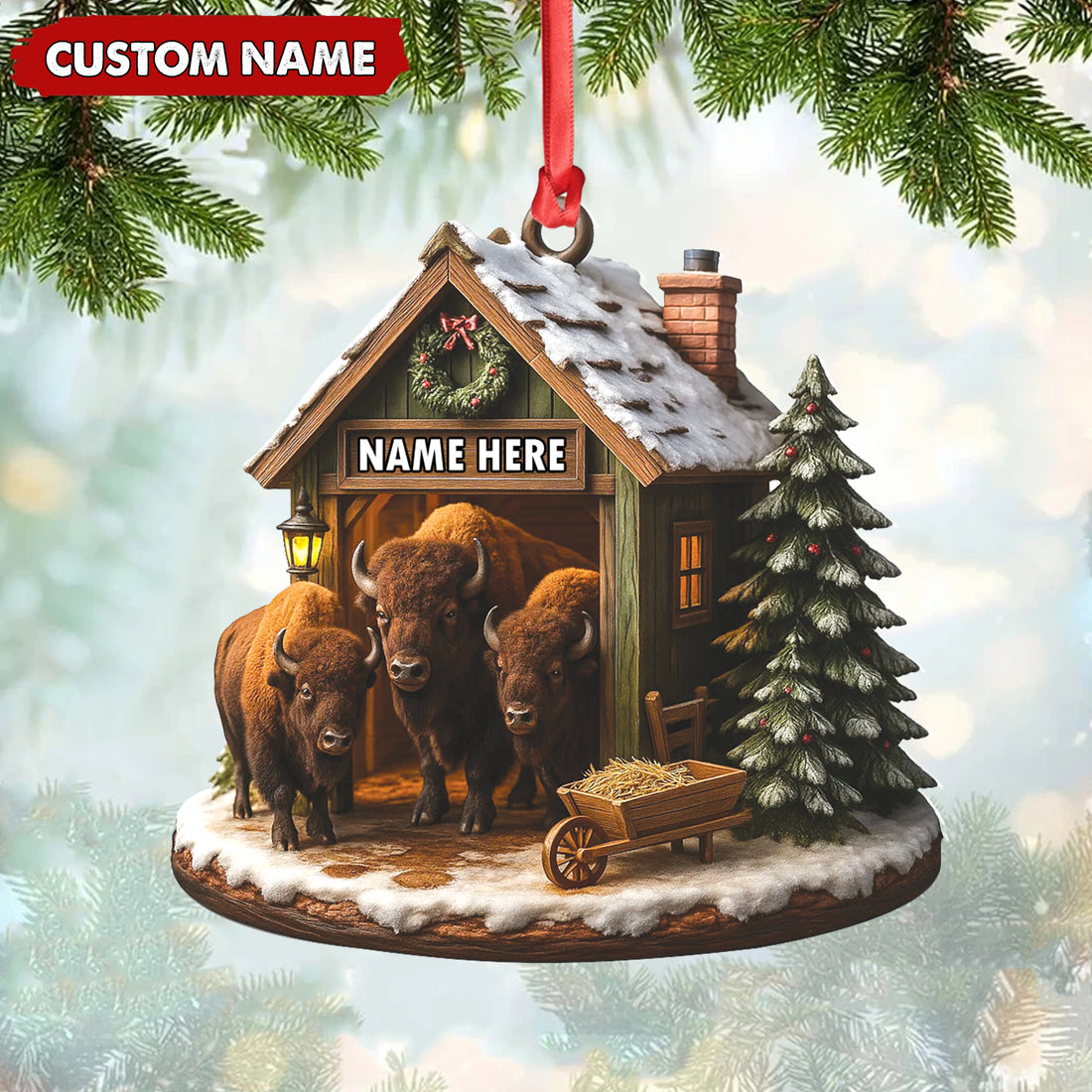Personalized Acrylic Bison Christmas Ornament – Custom Buffalo Barn Holiday Decor