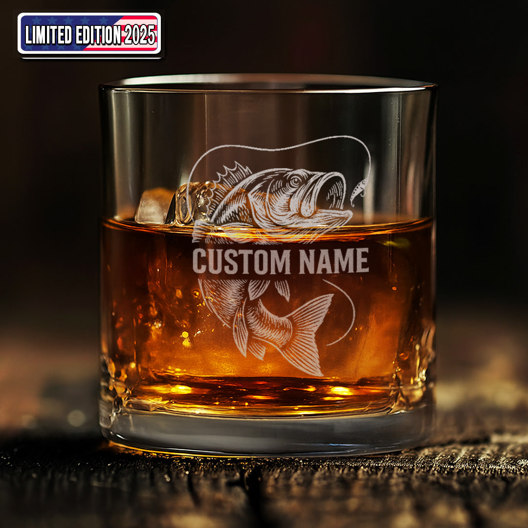Custom Name Bass Fishing Whiskey Glass – Personalized Engraved Fisherman Gift 2025