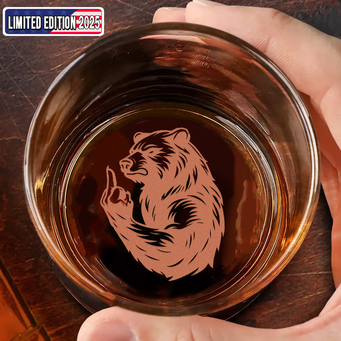 Bear Engraved Whiskey Glass – Funny Funny Finger Whiskey Glass for Men, Unique Barware Gift