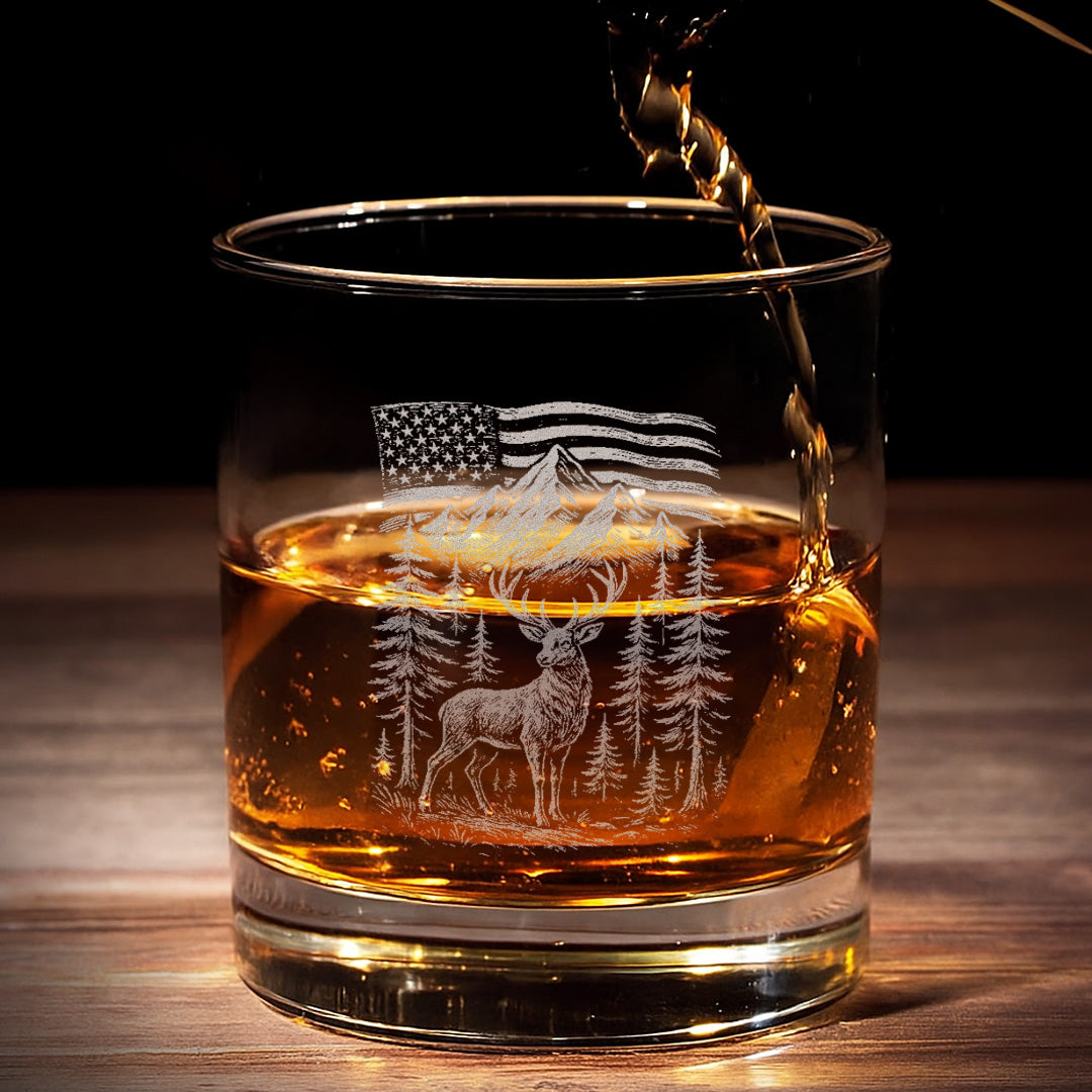 Patriotic Deer Whiskey Glass – Custom Engraved American Flag Hunting Gift for Outdoorsmen 2025