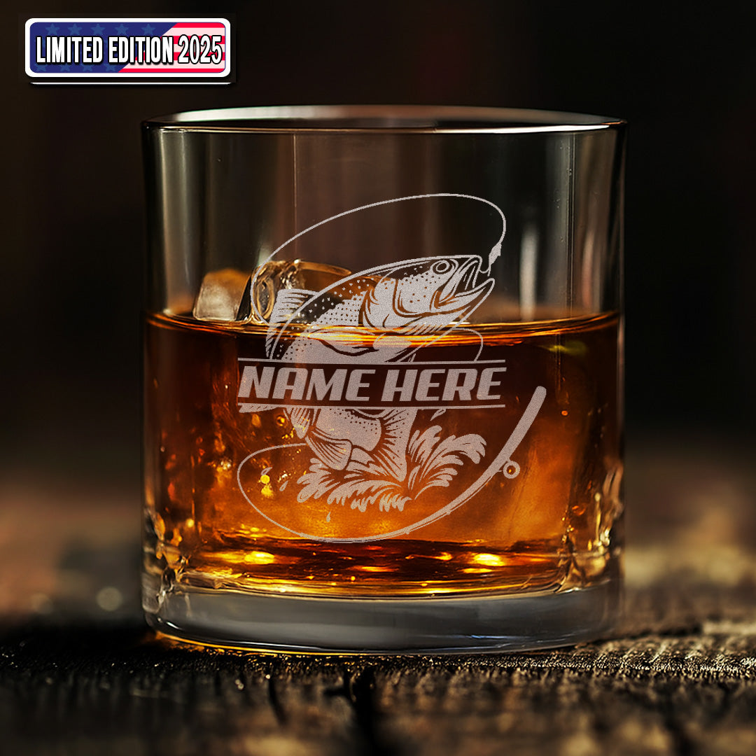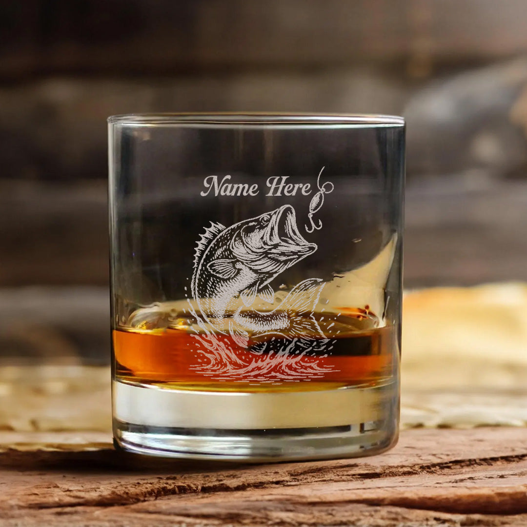 Personalized Fishing Whiskey Glass, Custom Engraved Bass Whiskey Glass Gift for Fishermen 2025