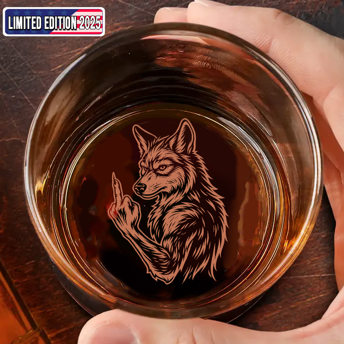Wolf Fuckin' Engraved Whiskey Glass, Custom Rocks Glass 2025, Funny Gift for Hunters & Outdoorsmen