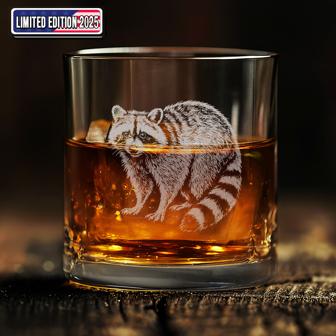 Wildlife Raccoon Engraved Whiskey Glass – Custom Rocks Glass Gift for Hunters & Wildlife Lovers