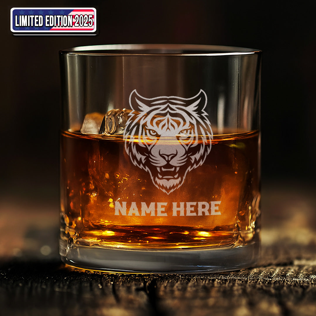 Personalized Whiskey Glass – Engraved Tiger Head, Custom Glass for Drinking Lovers And Man Cave Decor