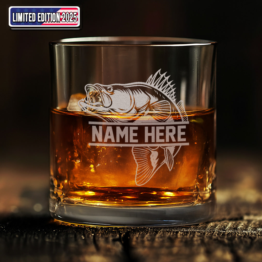Personalized Bass Fishing Whiskey Glass – Custom Engraved Fisherman Gift with Name 2025