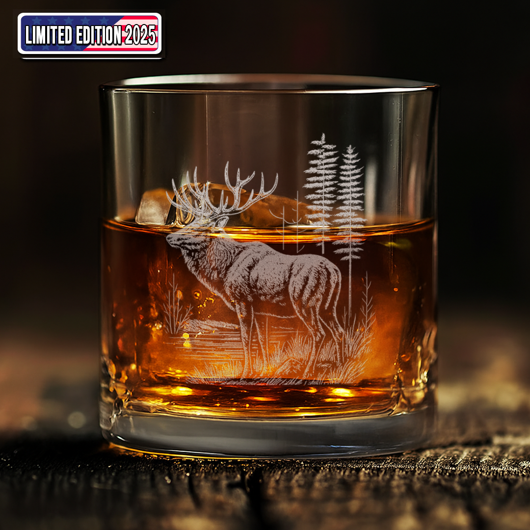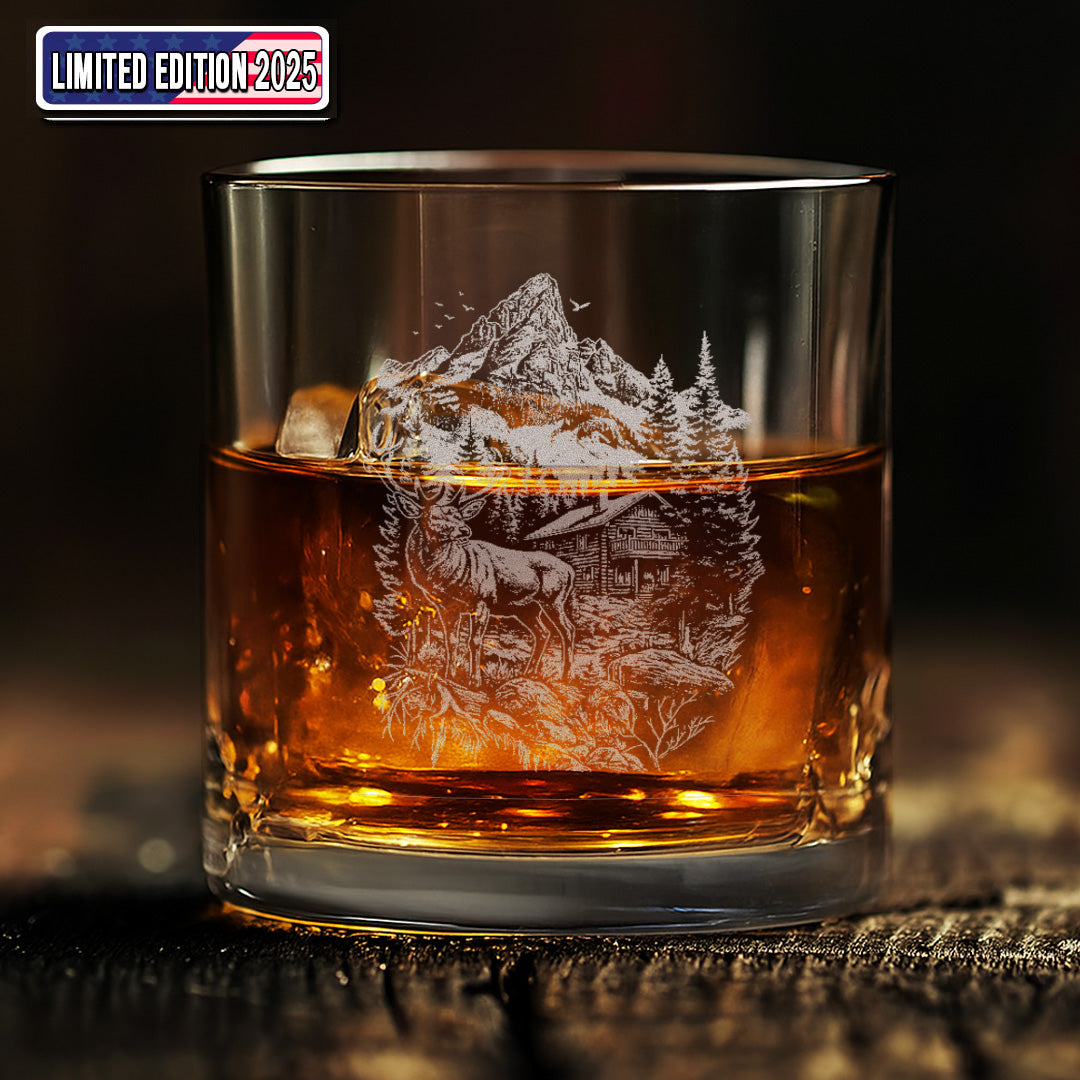 Deer Forest Whiskey Glass – Custom Engraved Mountain Cabin Hunting Gift for Outdoorsmen 2025