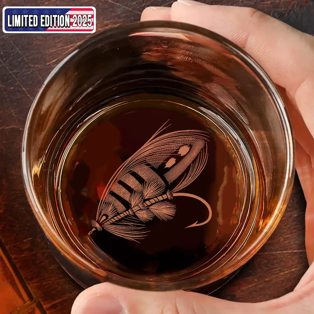 Fly Fishing Engraved Whiskey Glass – Whiskey Glass for Men, Fishermen & Drinking Lovers