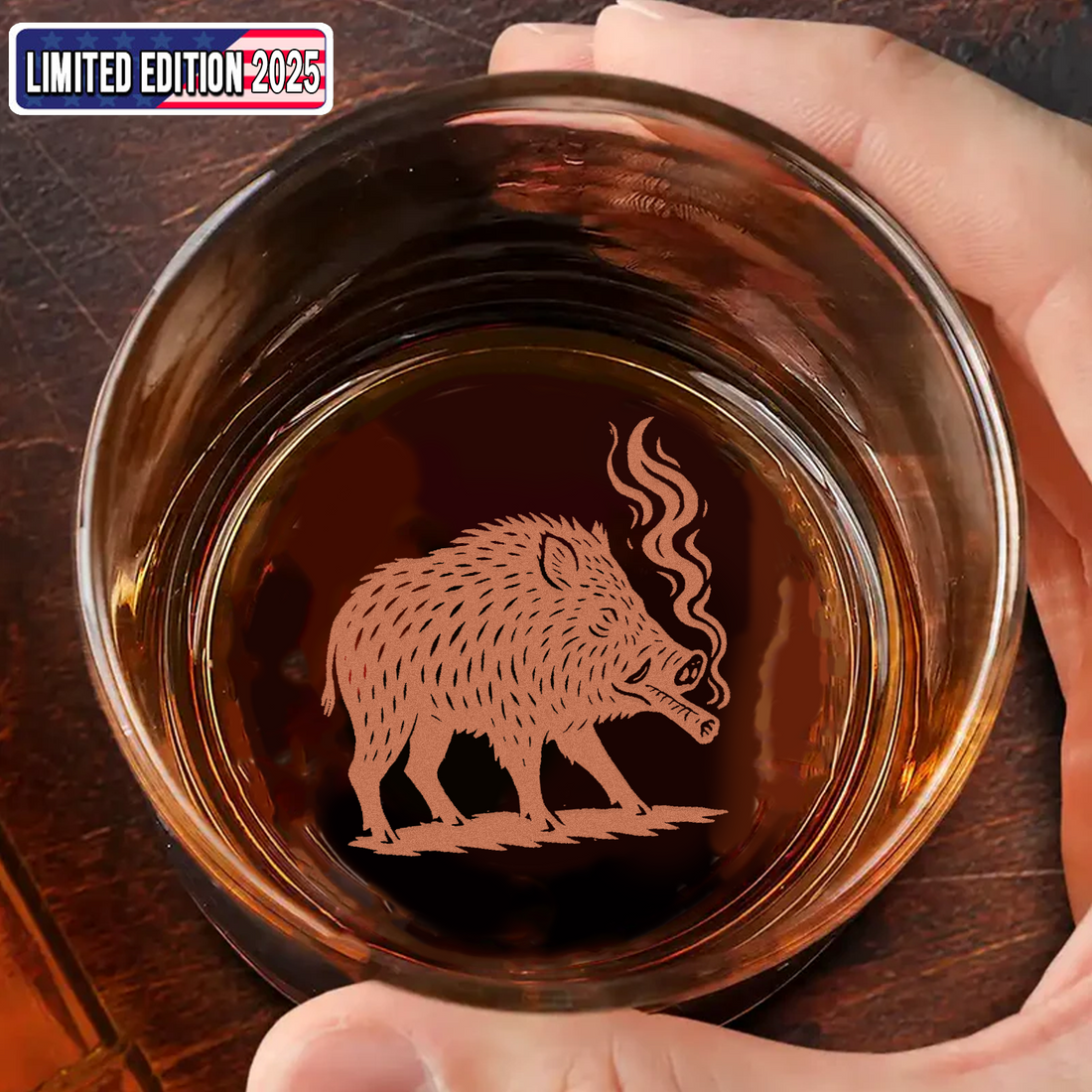 Wild Boar Hunting Engraved Whiskey Glass 2025 – Limited Edition Gift for Men & Hunters