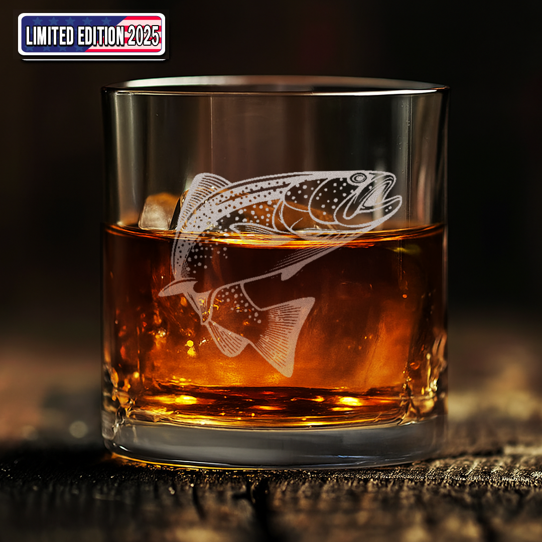 Trout Fishing Whiskey Glass – Custom Engraved Fly Fisherman Gift2025