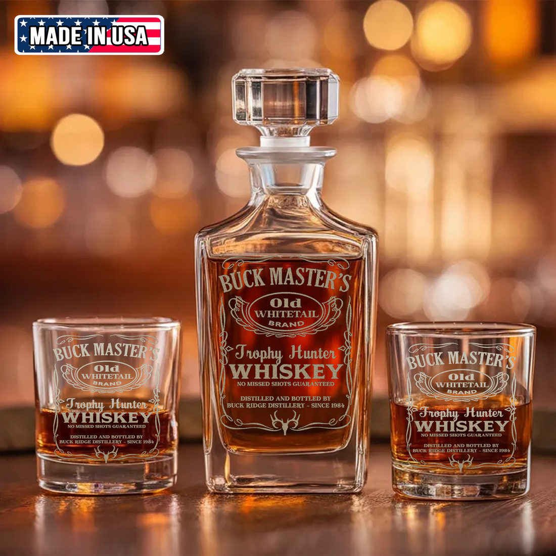Buck Master’s Whiskey Decanter Set – Engraved Trophy Hunter Glass Barware Gift for Hunters & Drinking Lovers