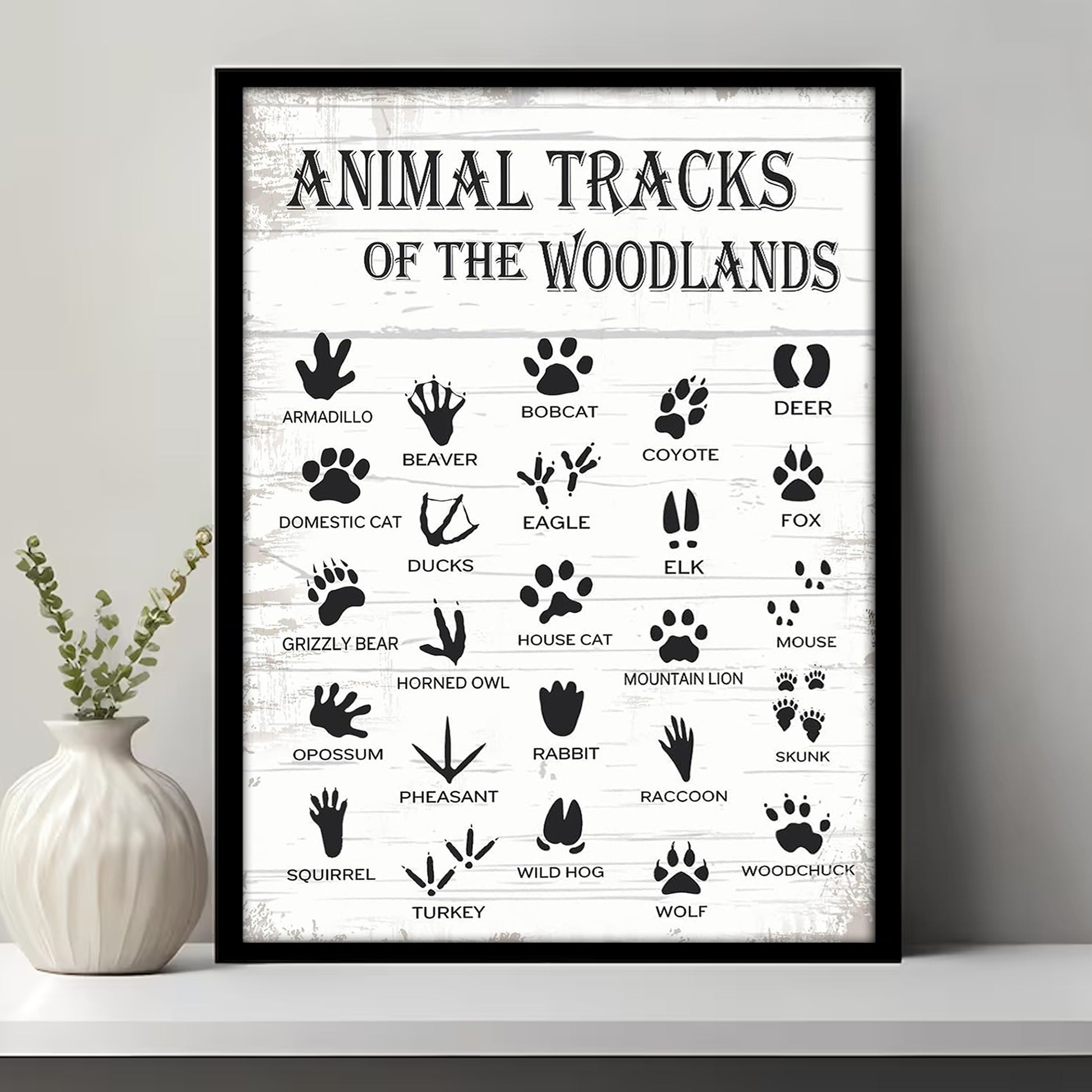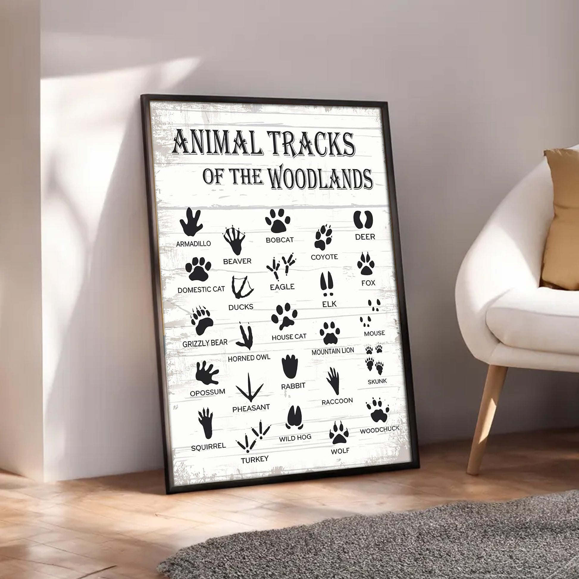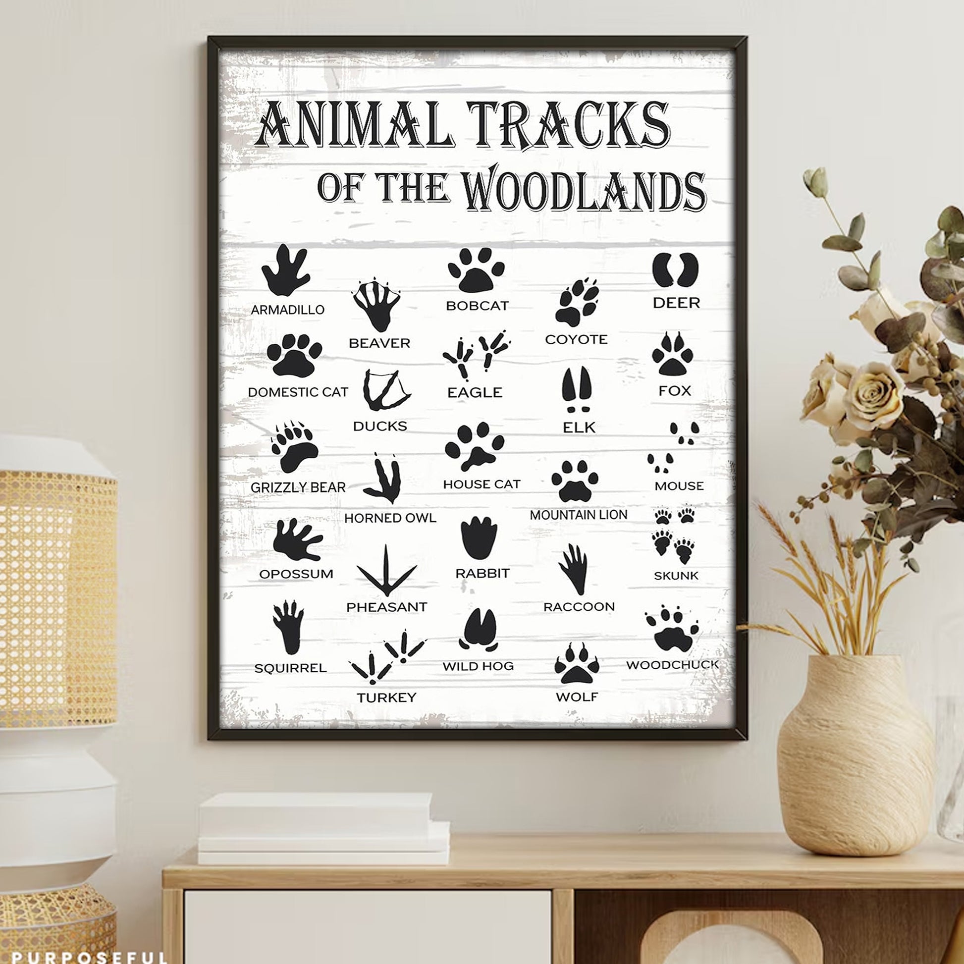 Animal Tracks of the Woodlands Canvas – Rustic Cabin Wall Art for Hunters & Nature Lovers