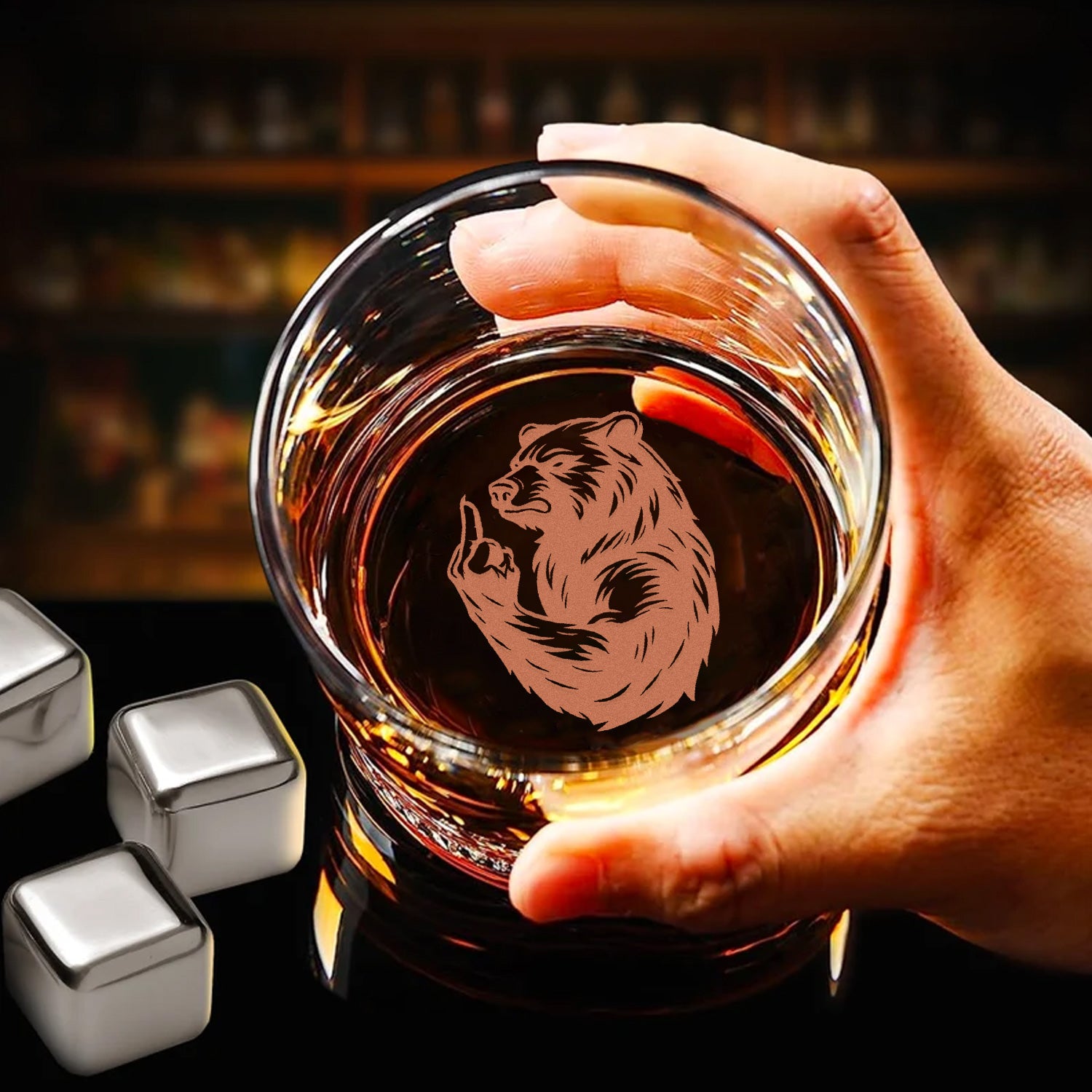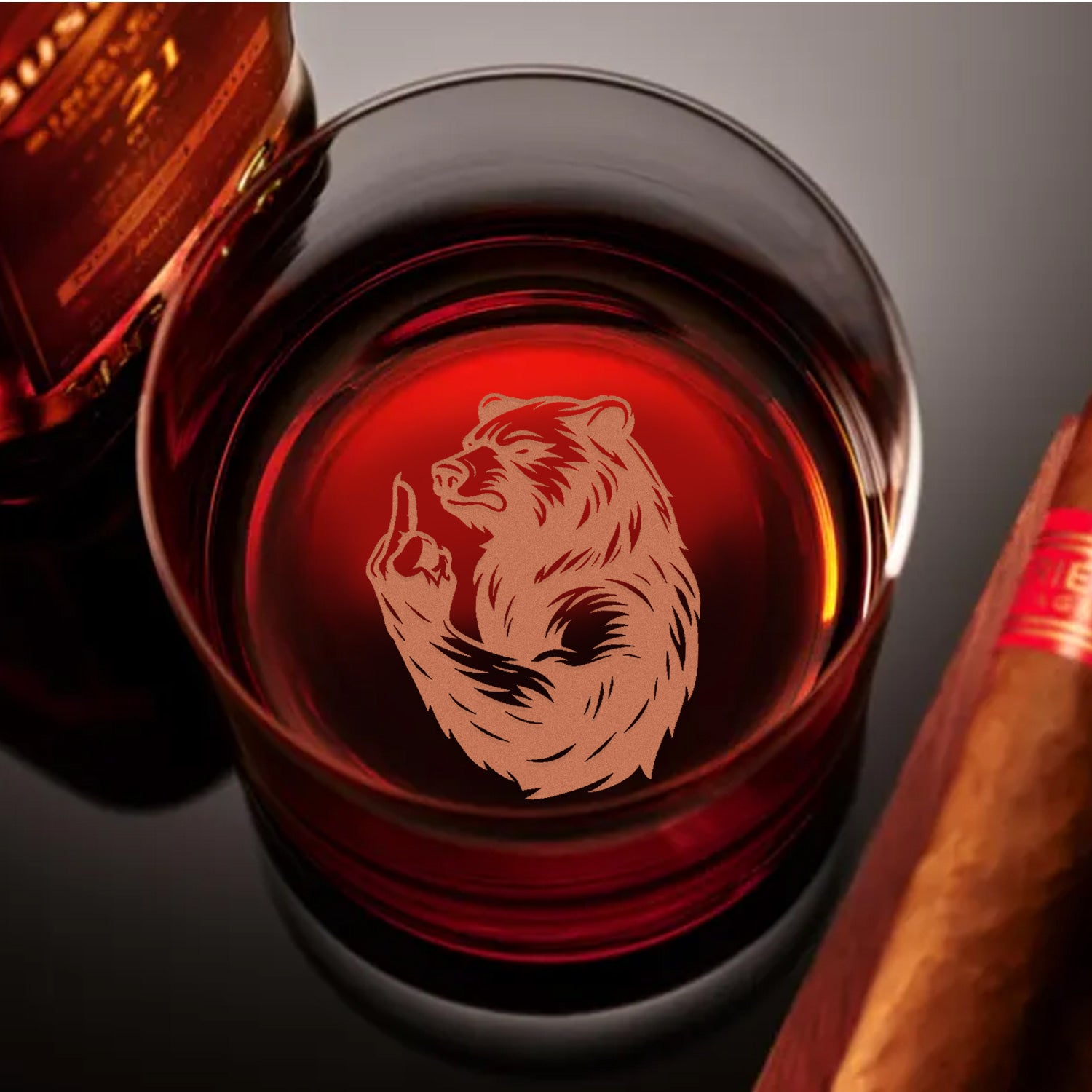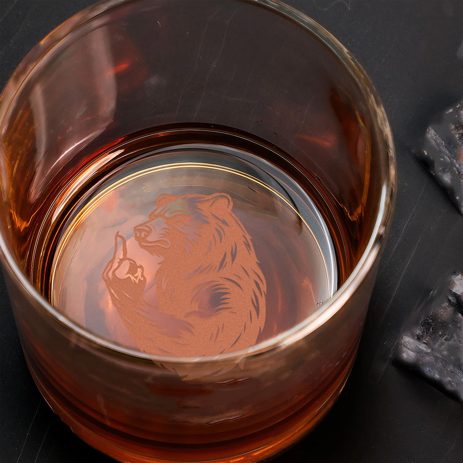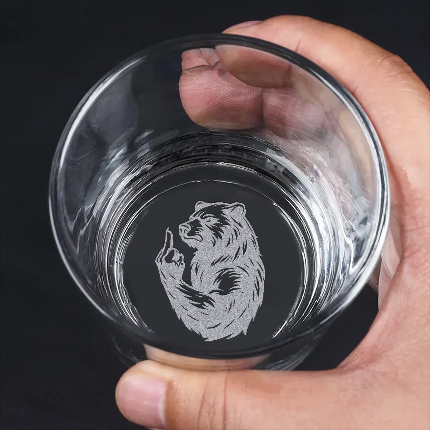 Bear Engraved Whiskey Glass – Funny Funny Finger Whiskey Glass for Men, Unique Barware Gift