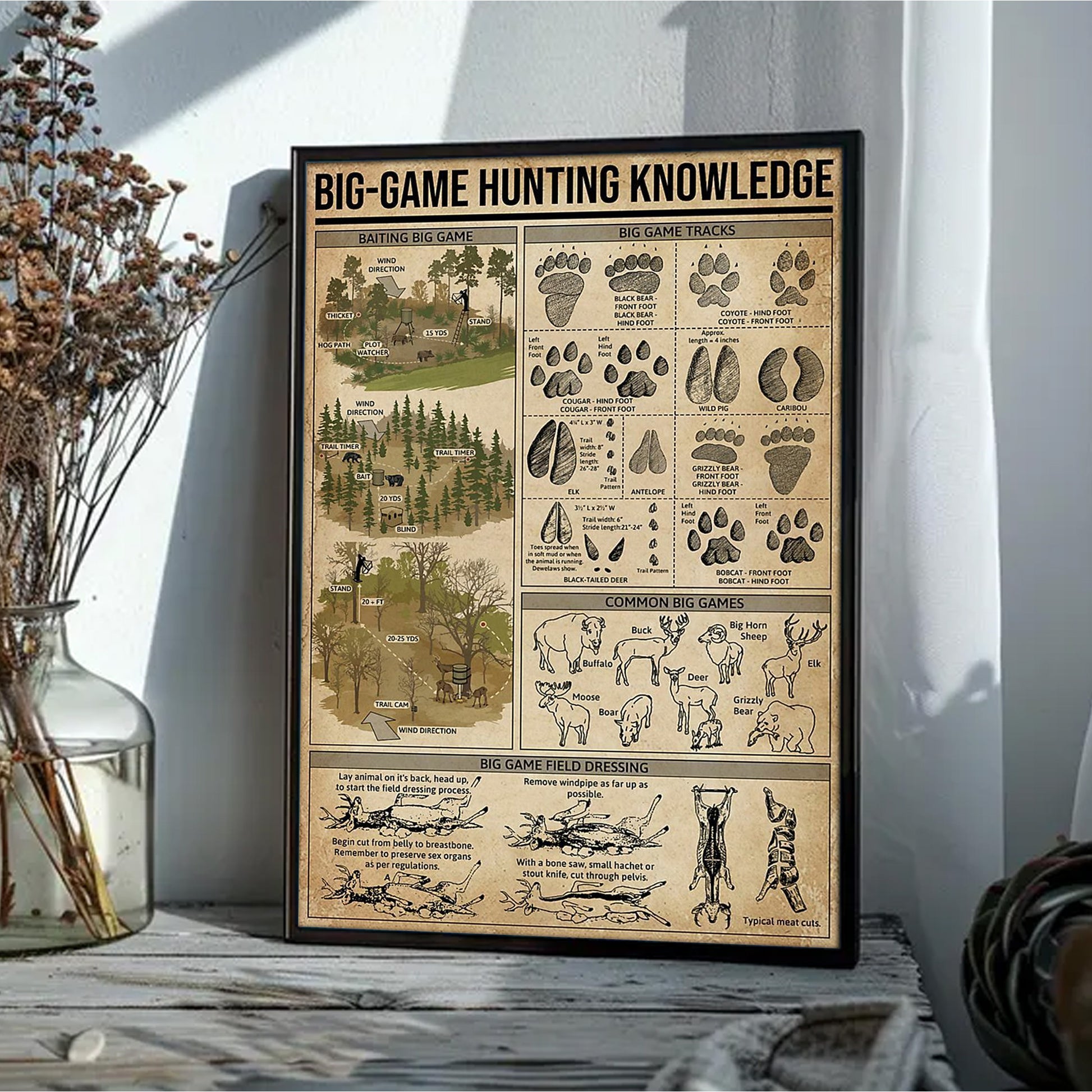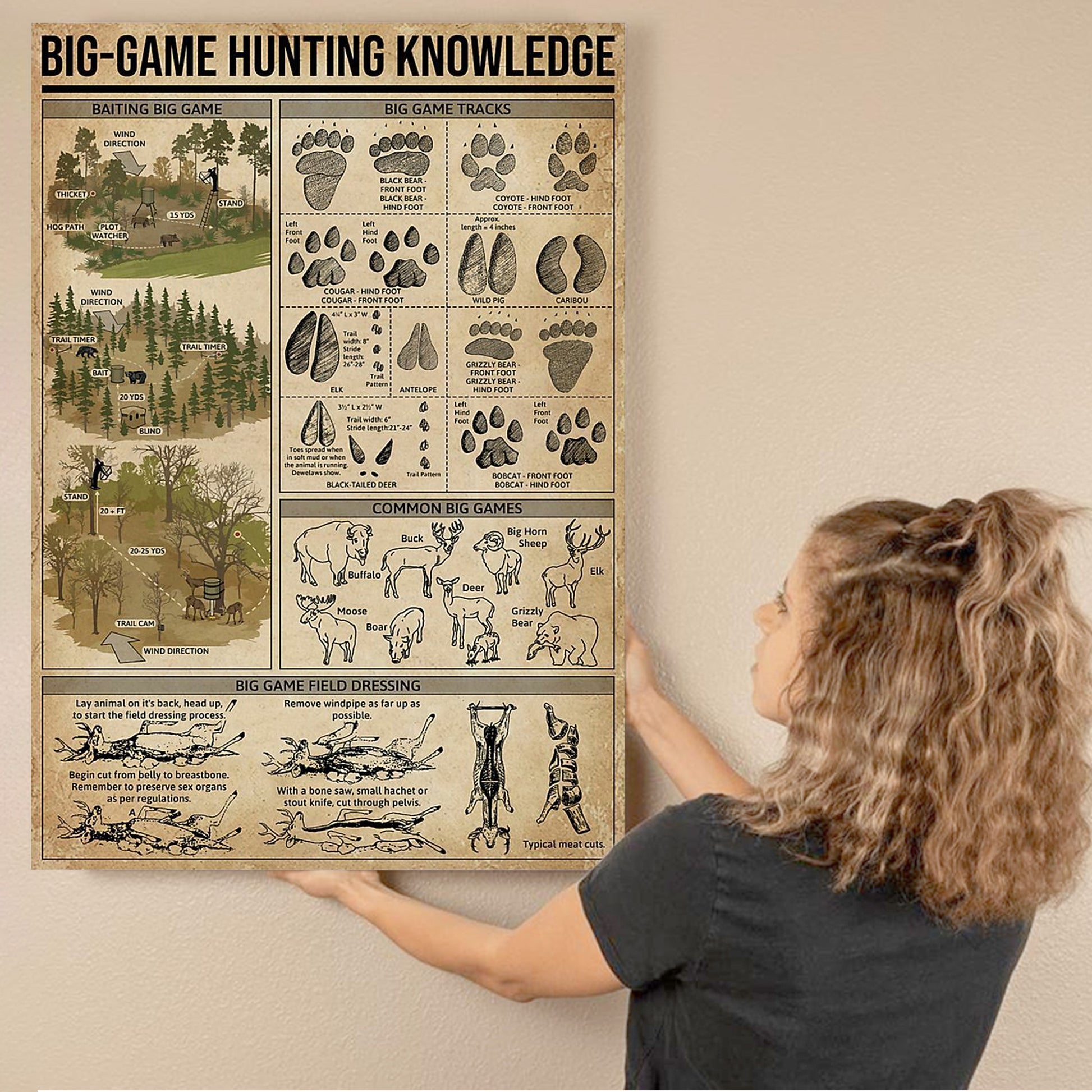 Big Game Hunting Knowledge Canvas – Deer, Elk & Bear Tracks & Field Guide Wall Art