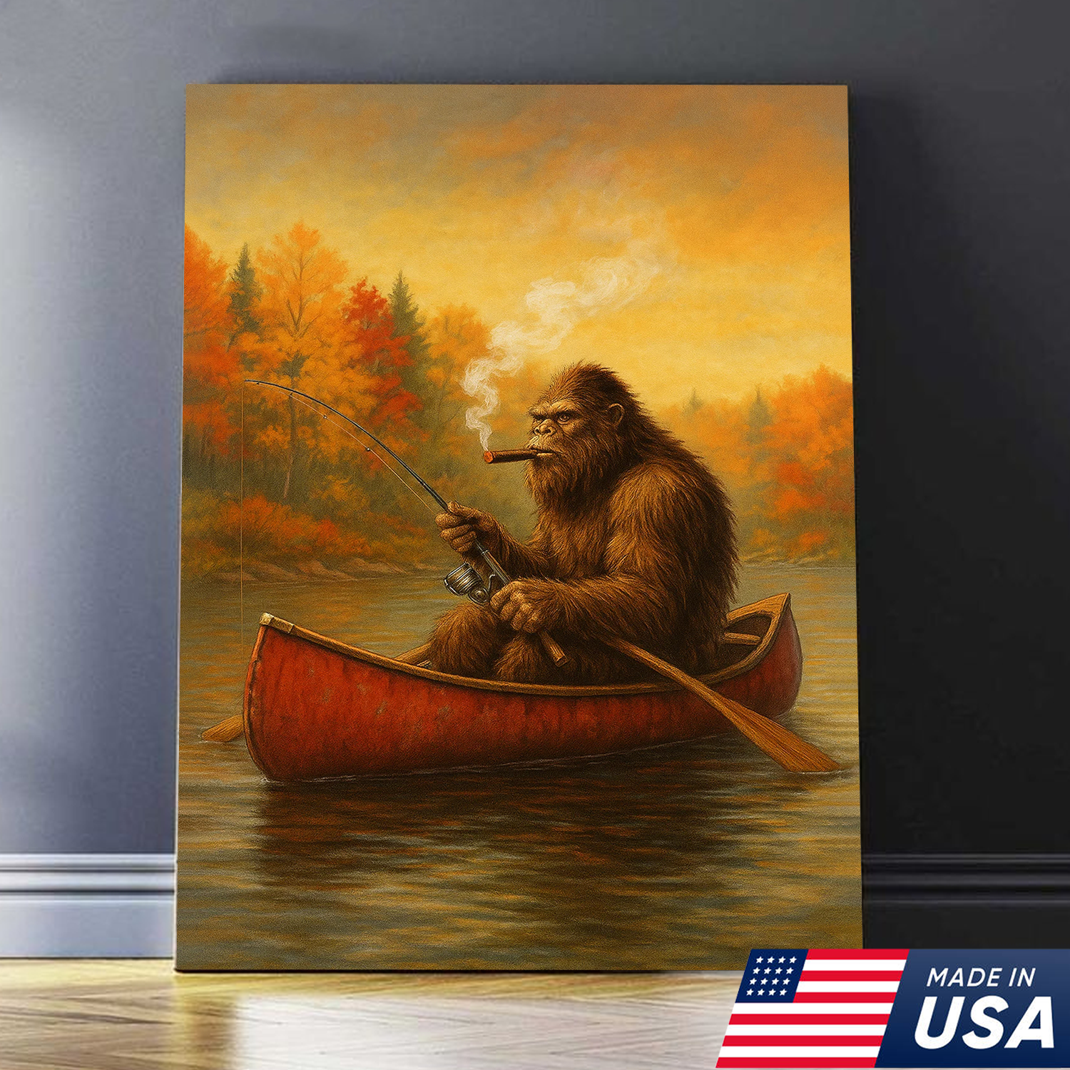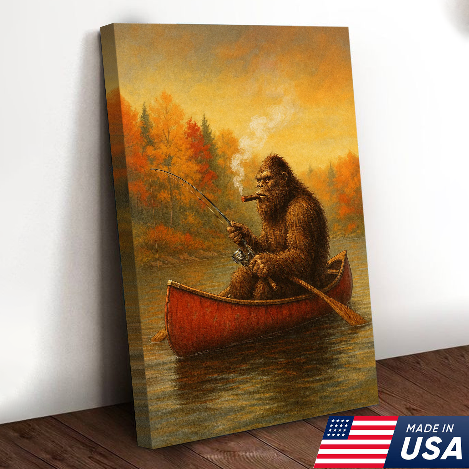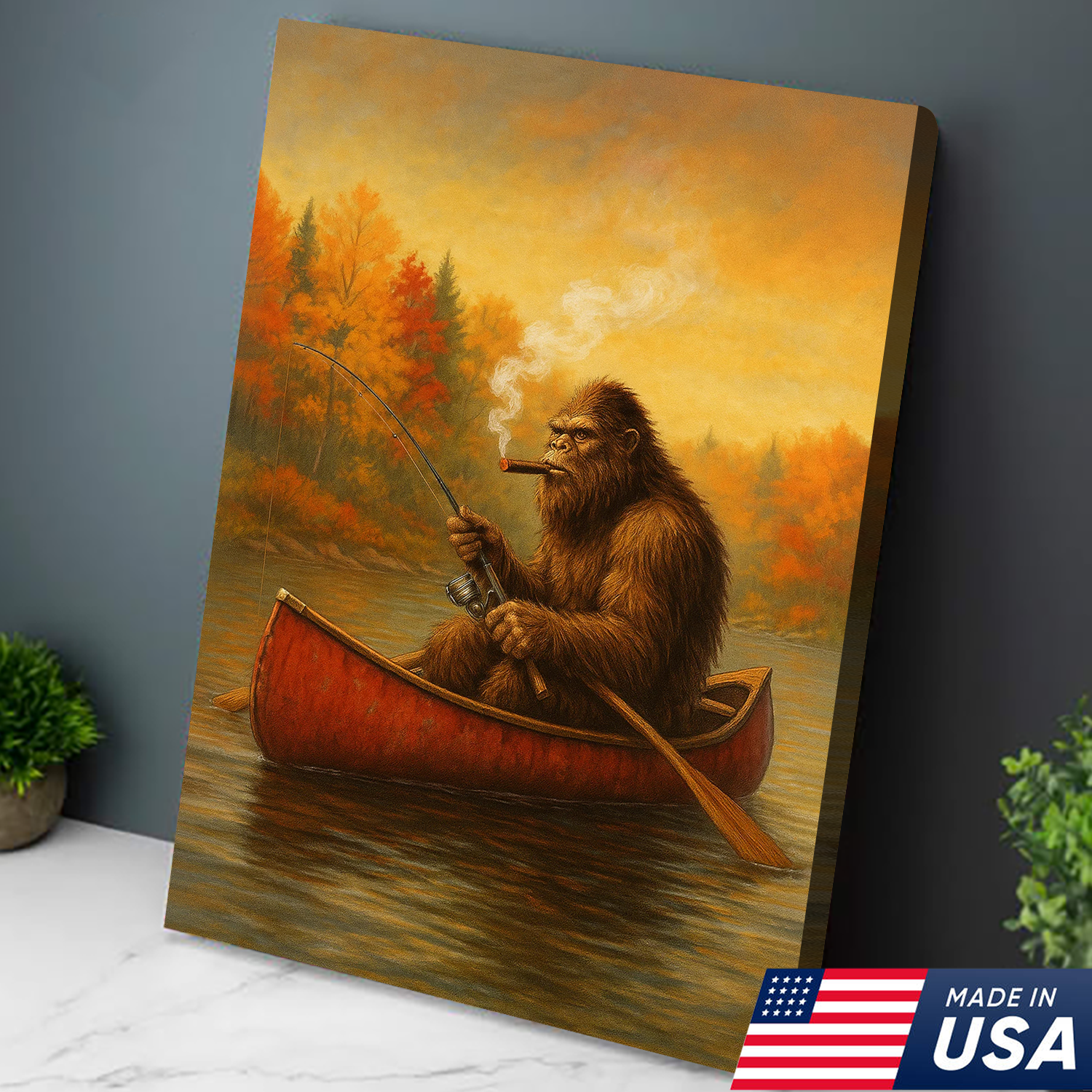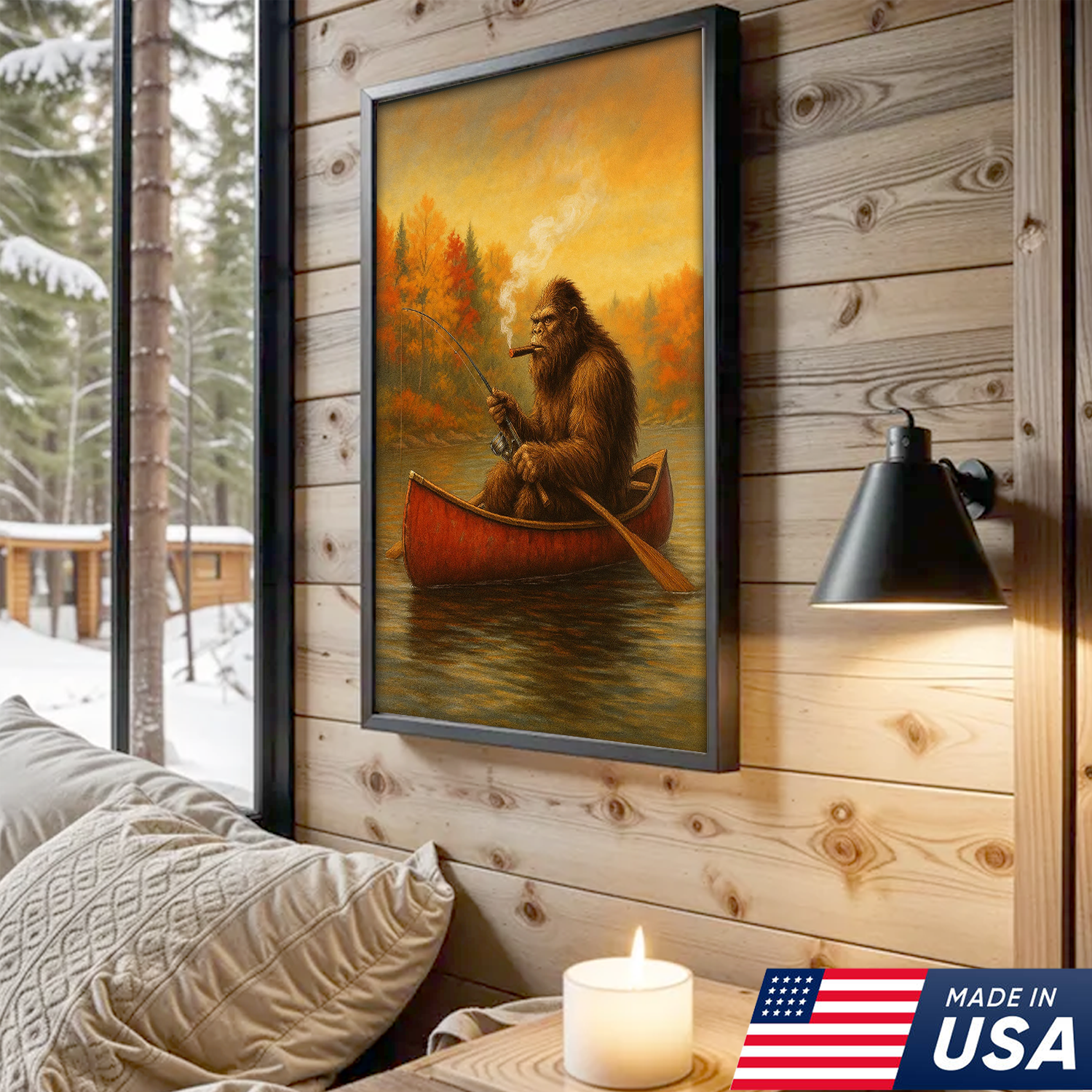Bigfoot Fishing Canvas Wall Art – Rustic Lodge & Man Cave Decor
