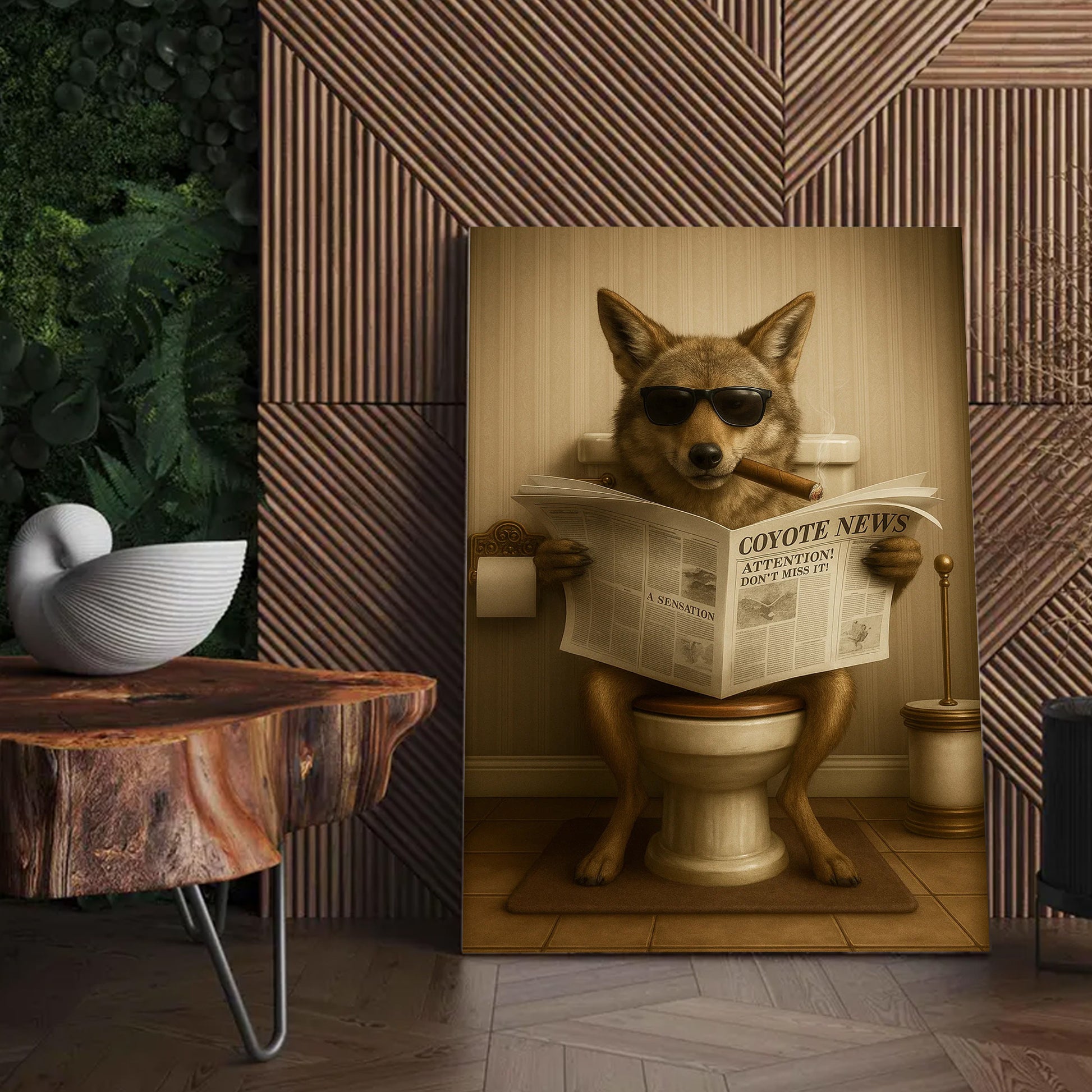 Smoking Coyote Wolf Canvas – Funny Wildlife Bathroom Art for Hunters & Cabin Decor
