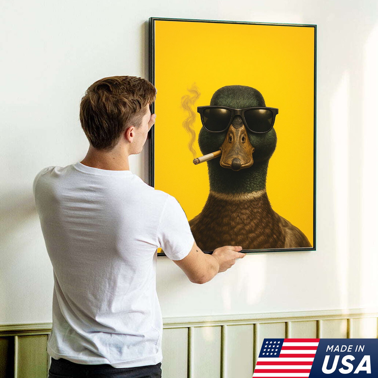 Cool Duck Canvas Wall Art - Funny Sunglasses Duck Hunting Lodge Decor - Rustic Farmhouse Wildlife Print