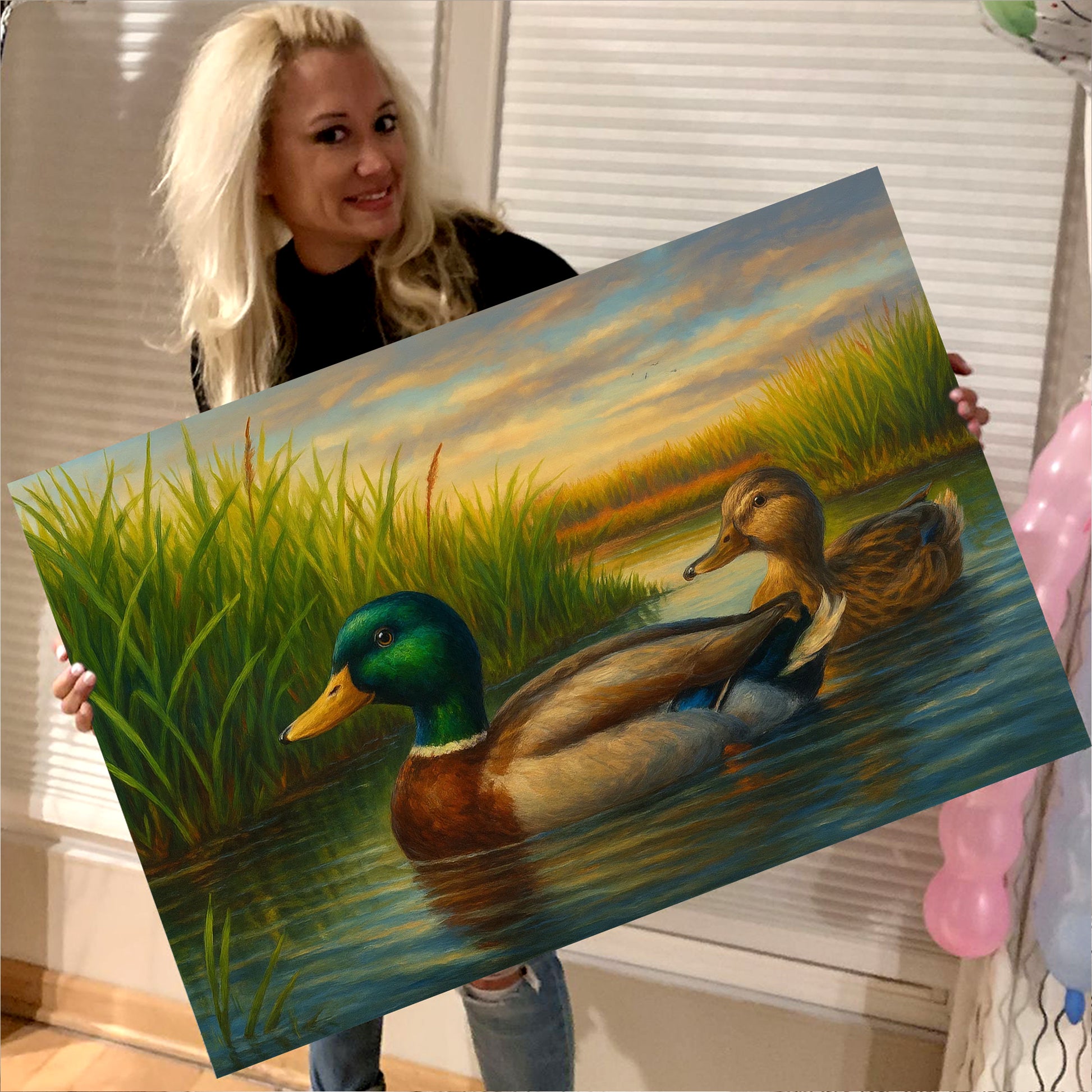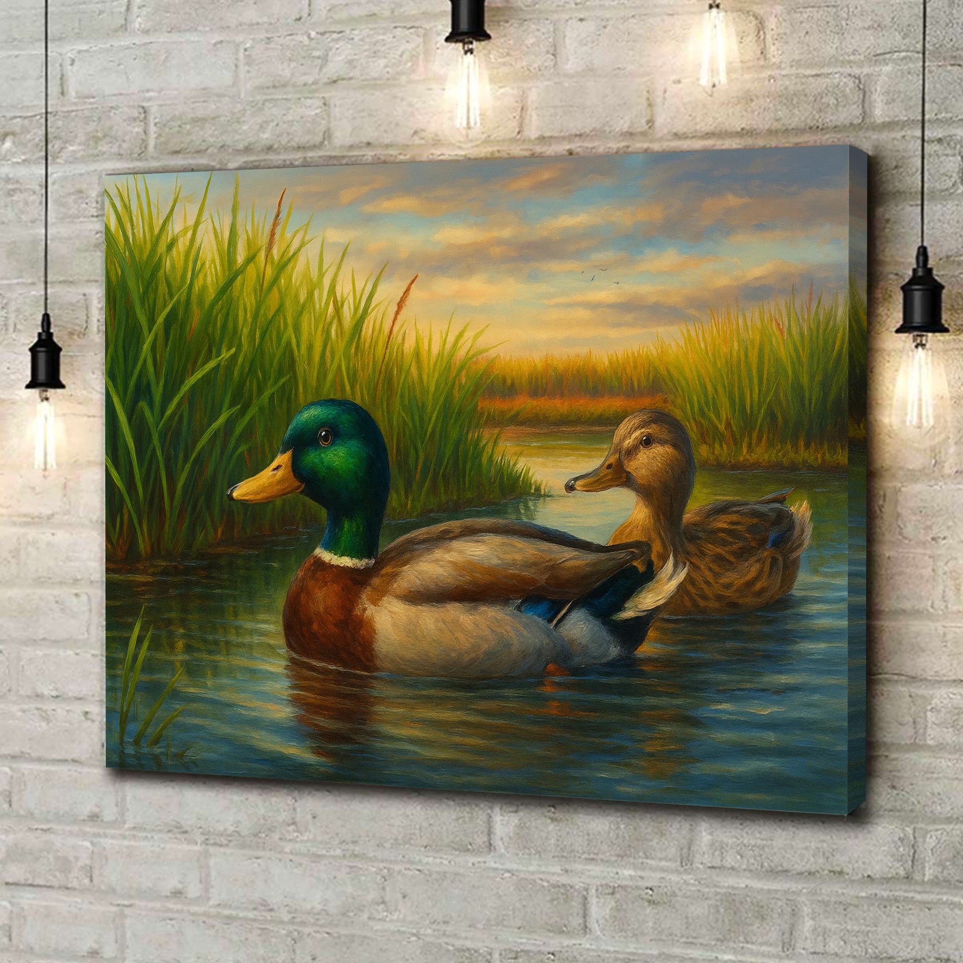 Couple Mallard Ducks Hunting Canvas – Realistic Wildlife Wall Art for Hunters