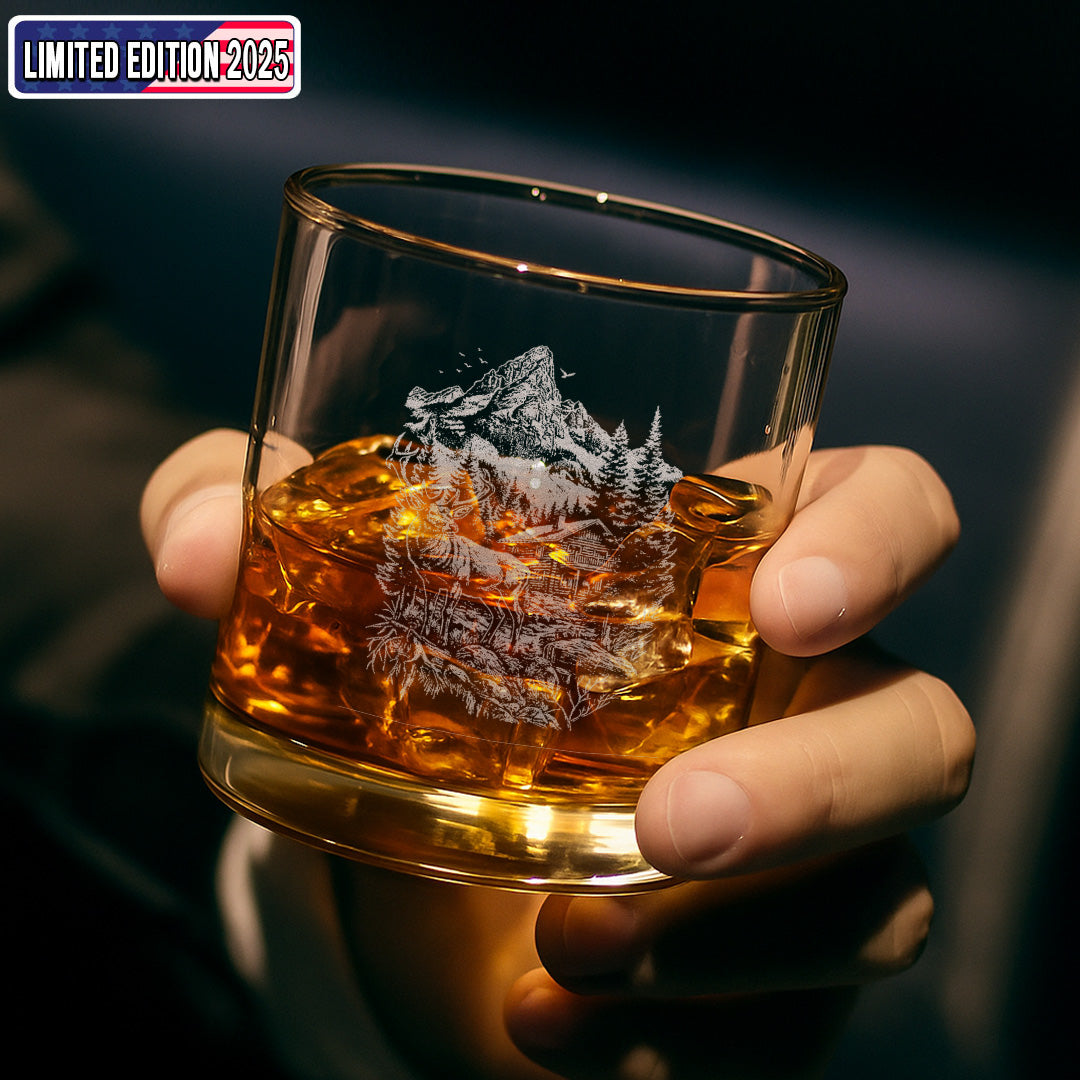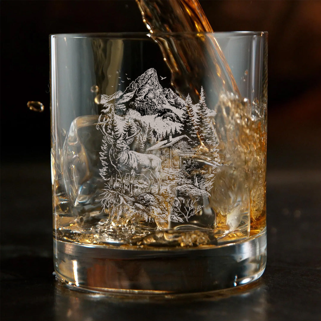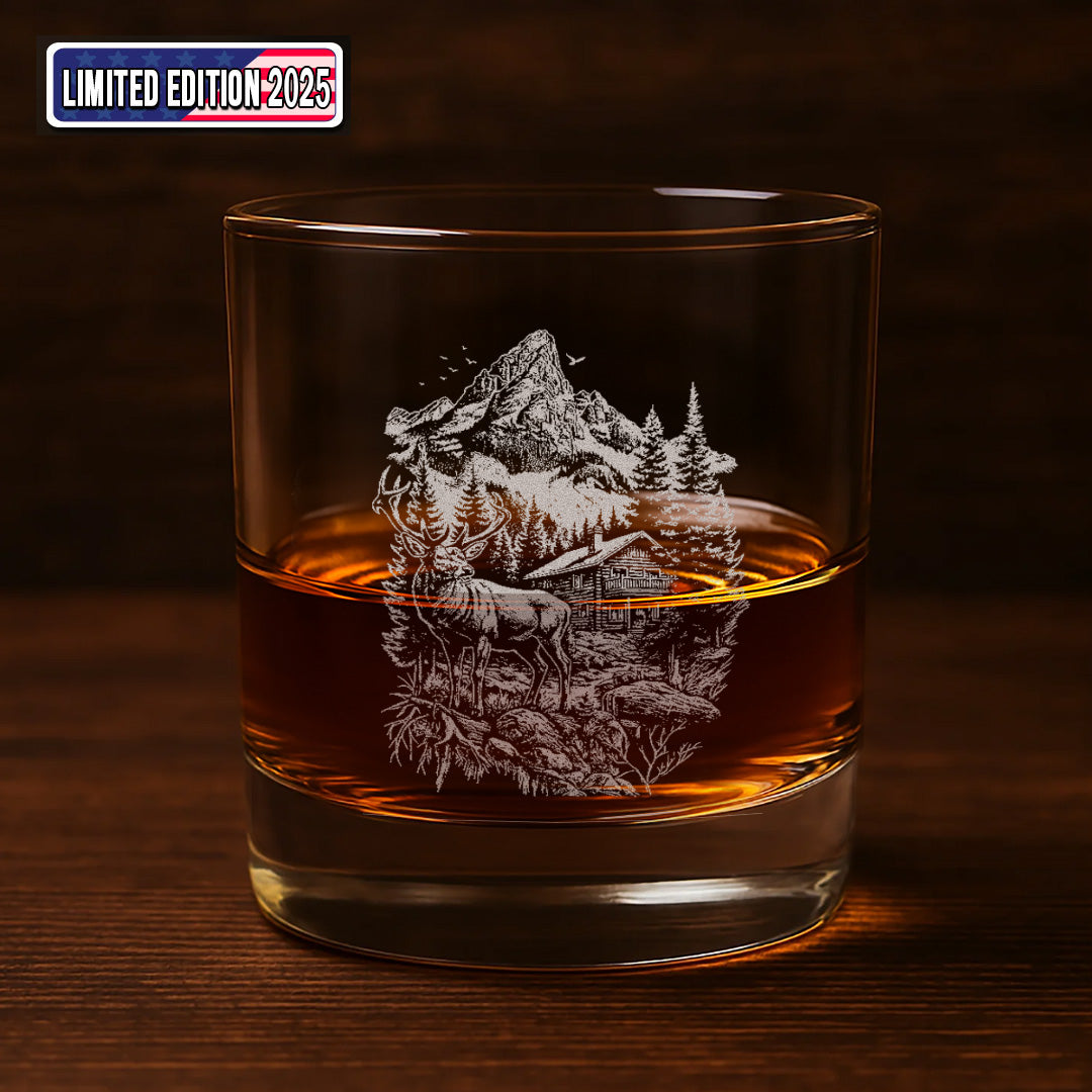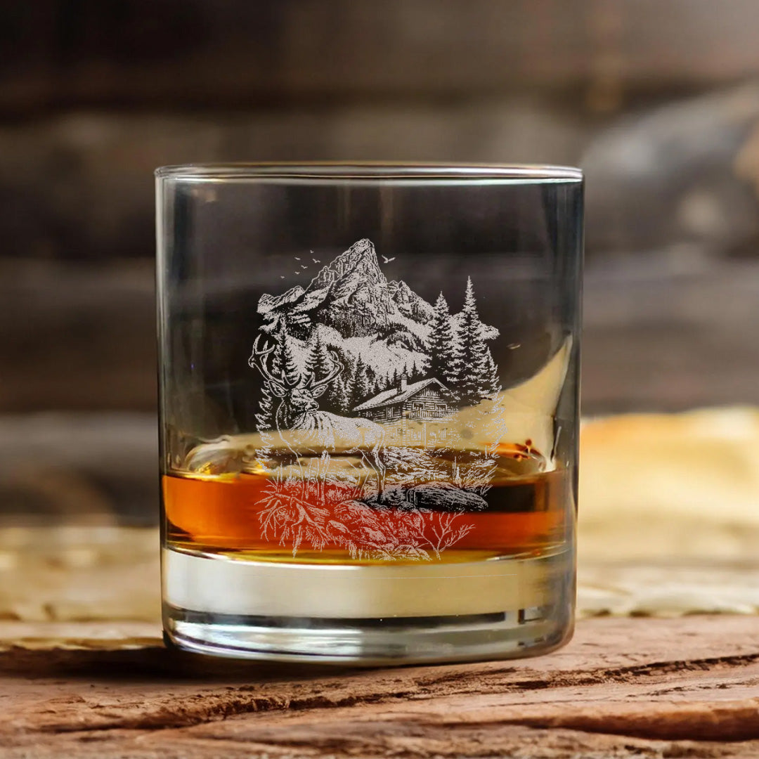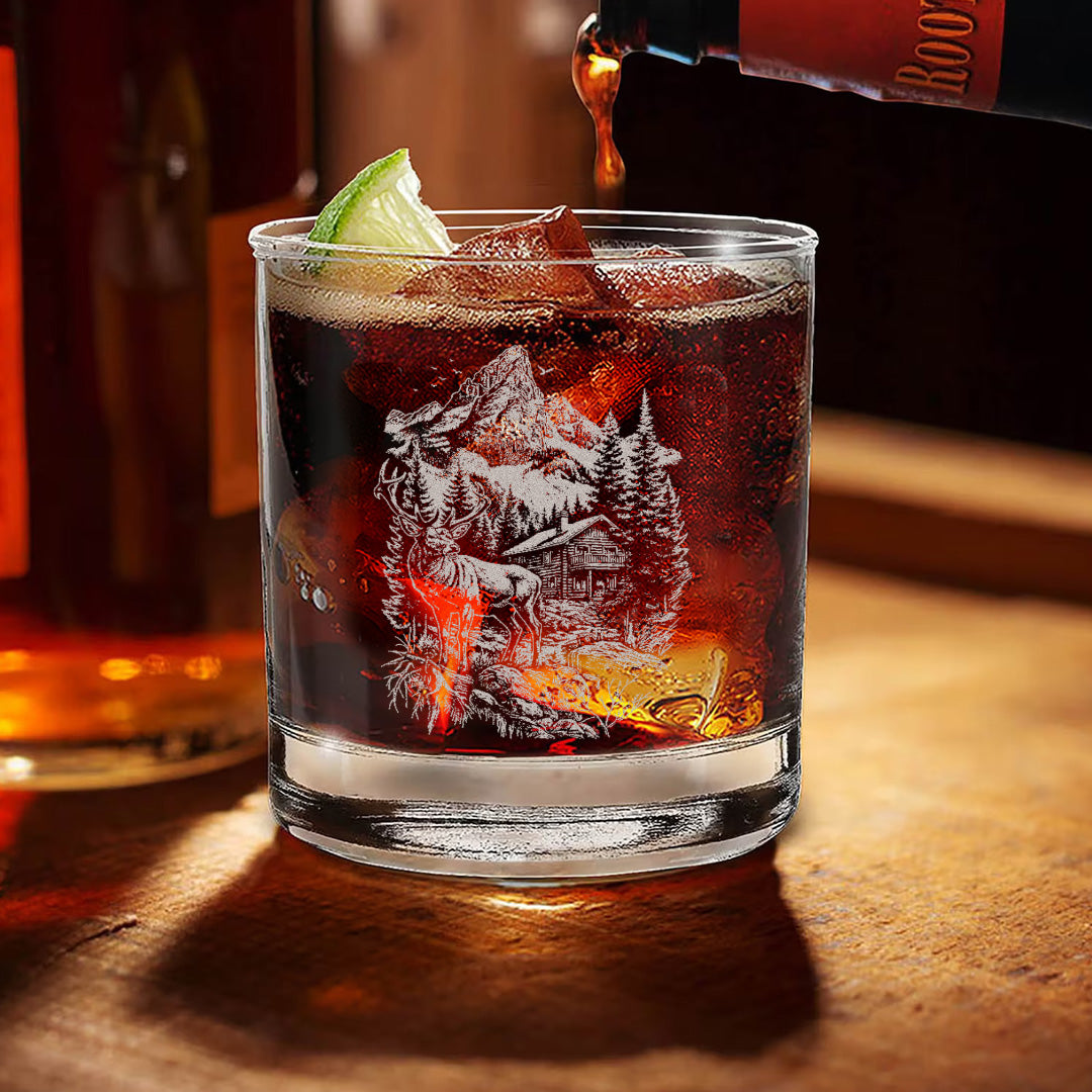 Deer Forest Whiskey Glass – Custom Engraved Mountain Cabin Hunting Gift for Outdoorsmen 2025
