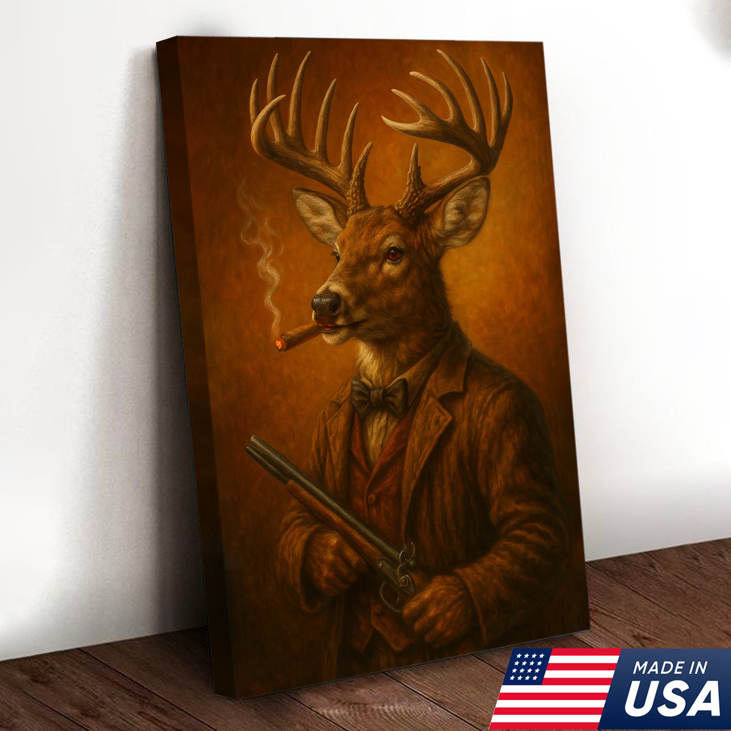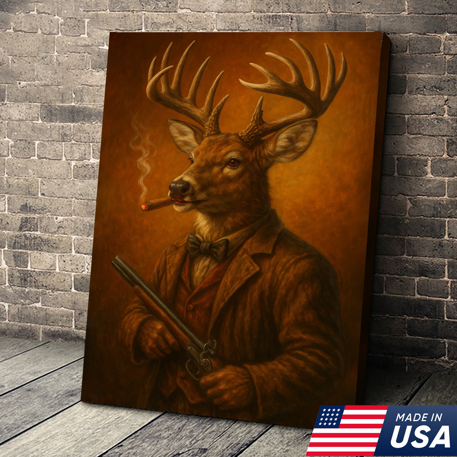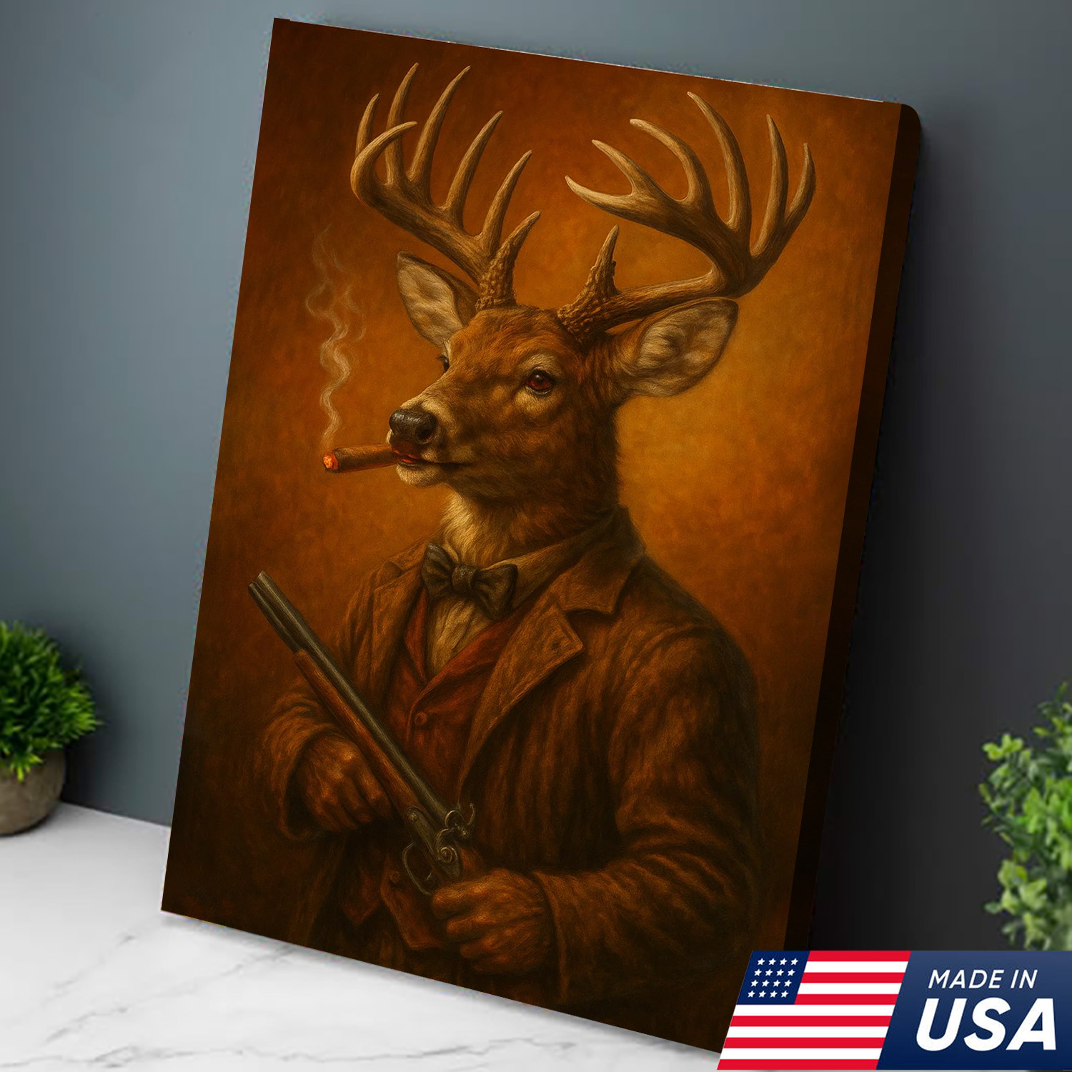 Deer Hunter Canvas Wall Art – Funny Hunting Gift for Men, Hunters & Lodge Decor