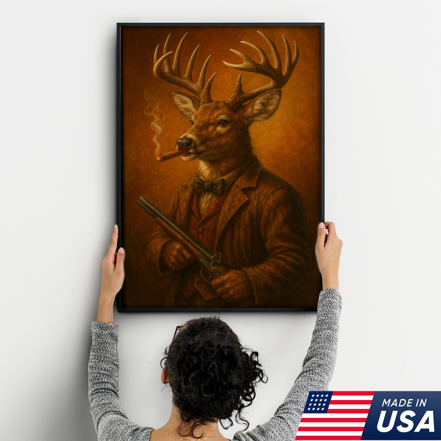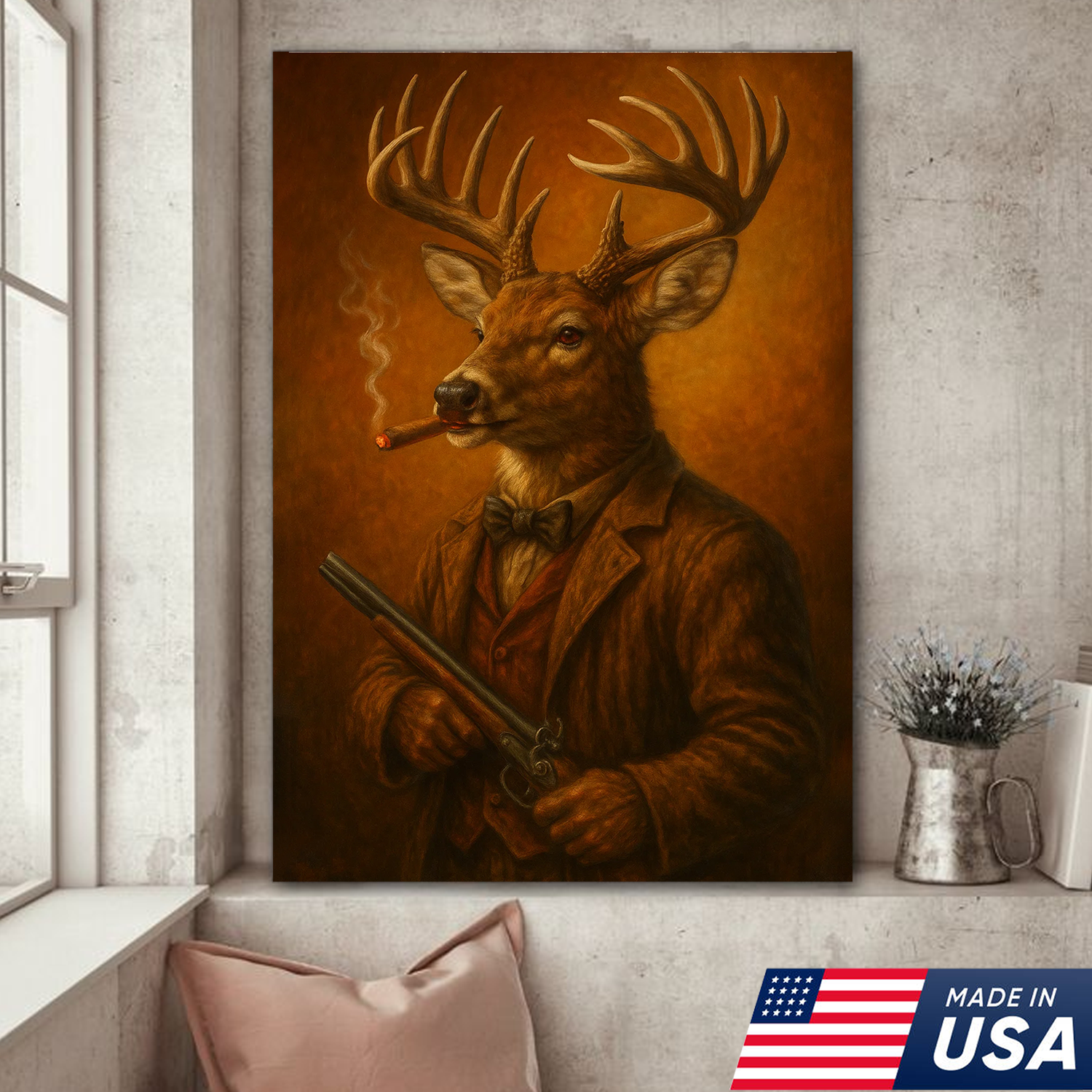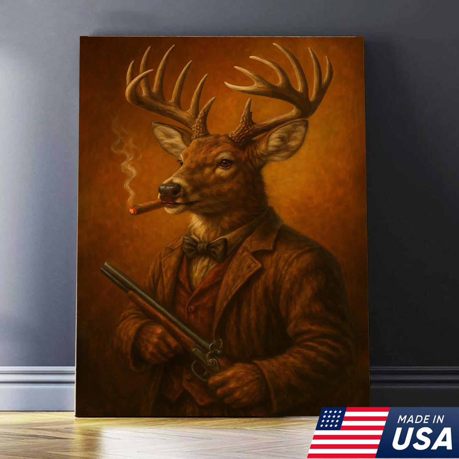 Deer Hunter Canvas Wall Art – Funny Hunting Gift for Men, Hunters & Lodge Decor