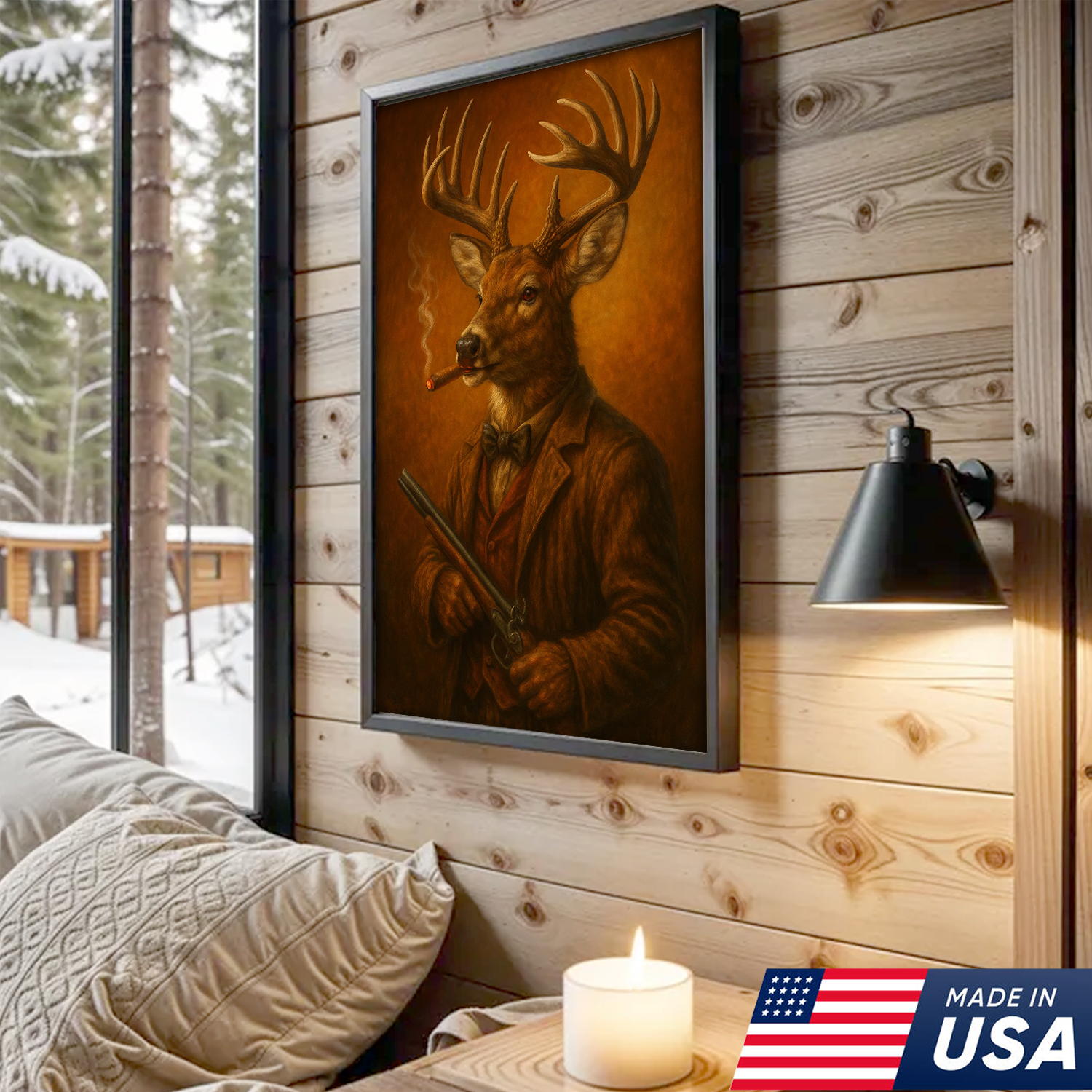 At BuckinDad, you can choose from a rugged canvas print or a framed masterpiece in a variety of sizes, perfect for any hunting-themed space, man cave, or office. Your artwork arrives ready to hang, so you can bring the wild to your walls the moment it arrives—no fuss, just straight-up style for your space.