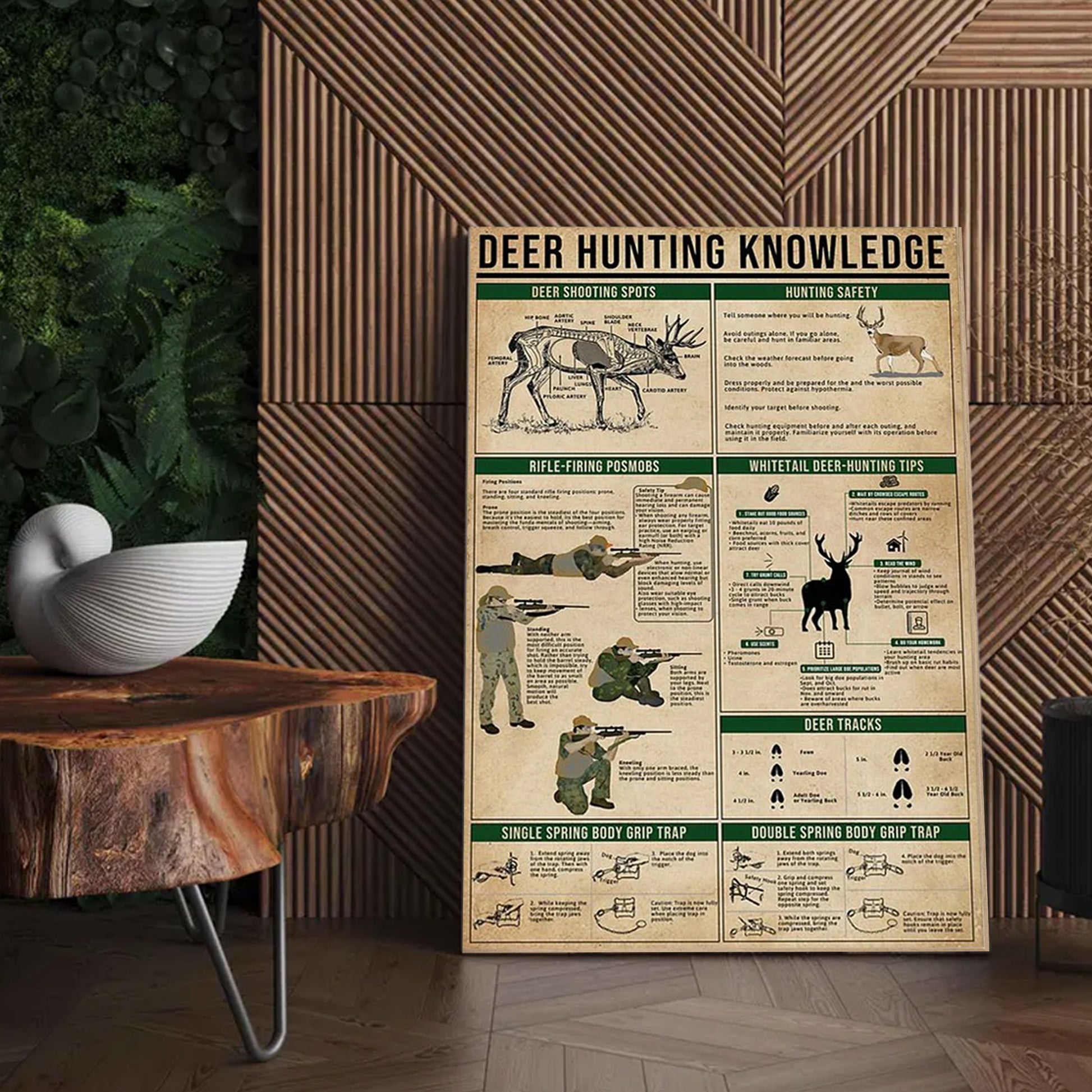Deer Hunting Knowledge Canvas Art - Hunting Tips, Safety & Rifle Firing Guide | Perfect Gift for Hunters
