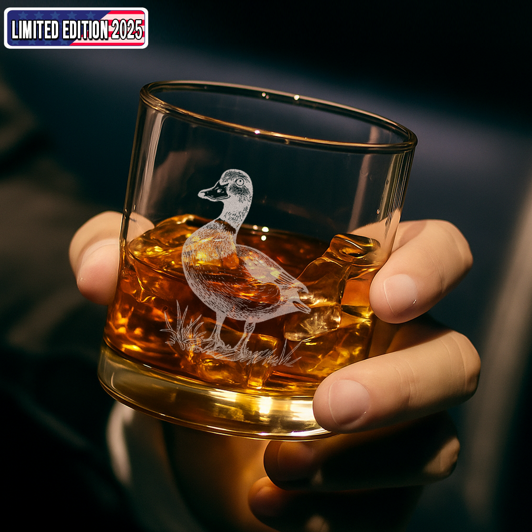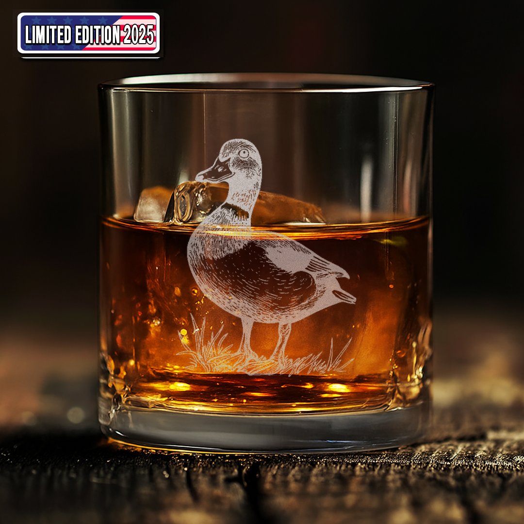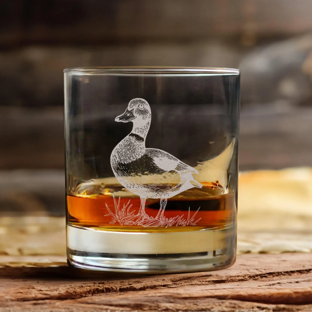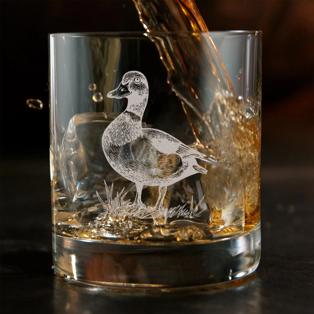 Duck Engraved Whiskey Glass, Hunting Rocks Glass Gift for Waterfowl & Drinking Lovers