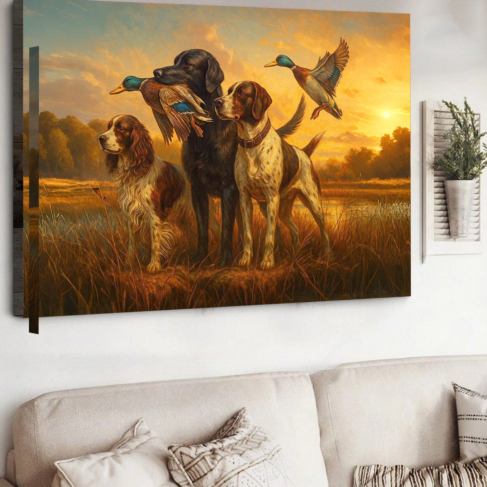 Duck Hunting Dogs Canvas Wall Art, Rustic Hunting Home Decor, Perfect Gift for Hunters