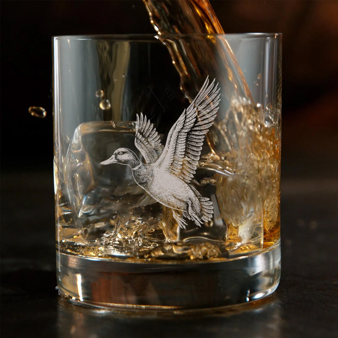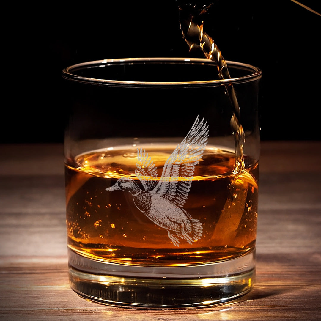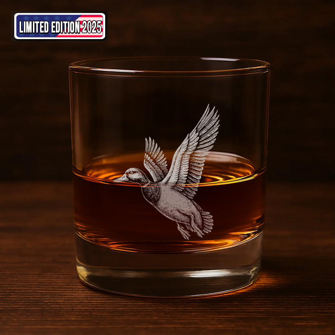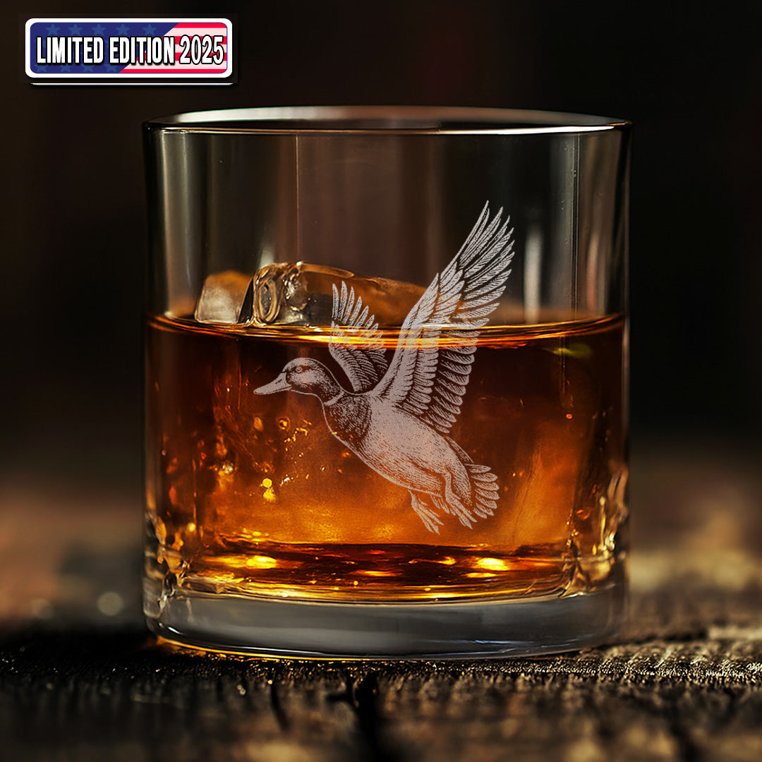 Duck Hunting Whiskey Glass – Custom Engraved Flying Duck Whiskey Glass Gift for Waterfowl Hunters 2025