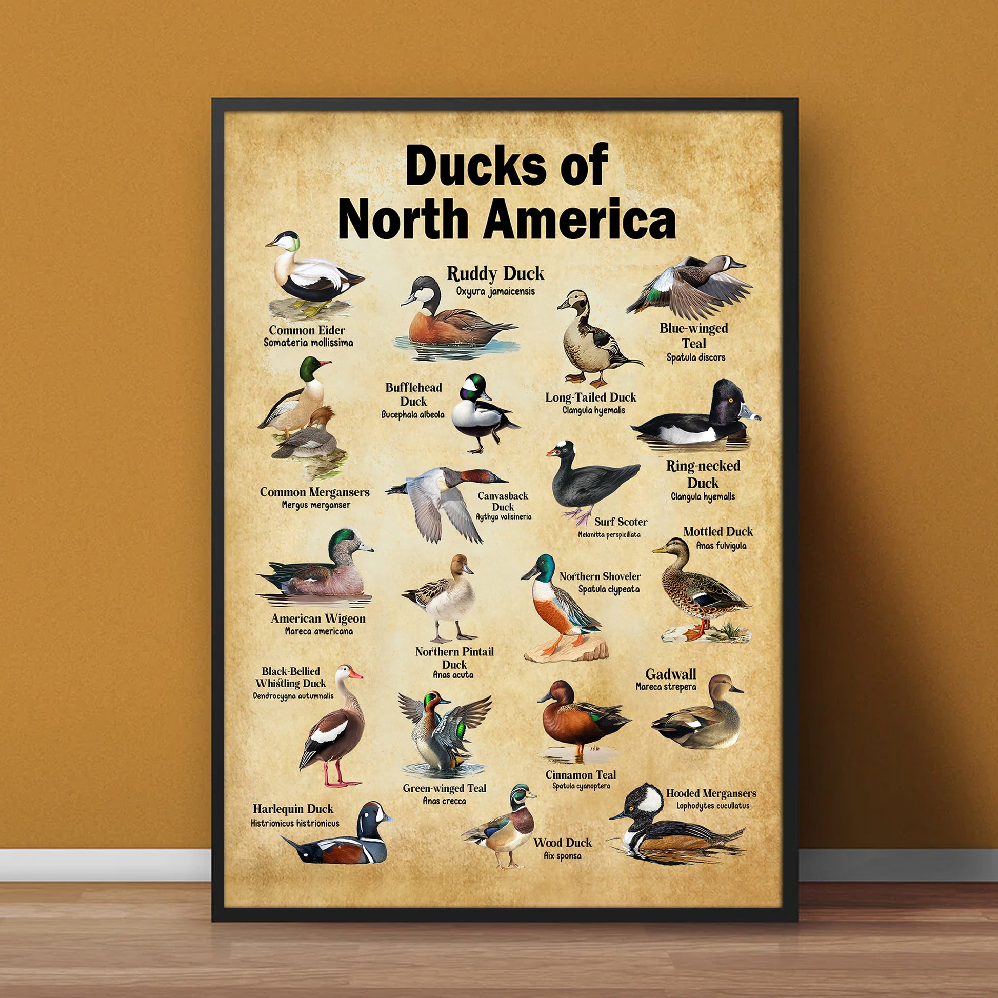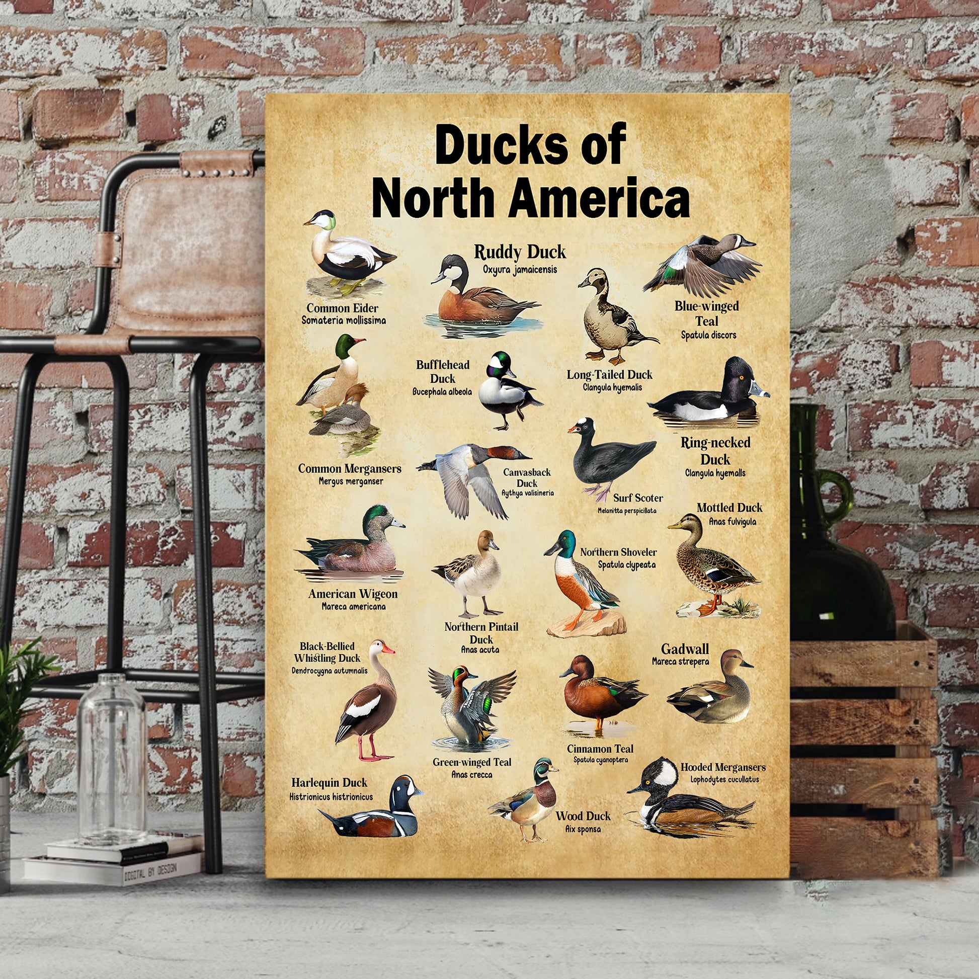 Ducks of North America Canvas – Educational Wall Art for Hunters & Nature Lovers