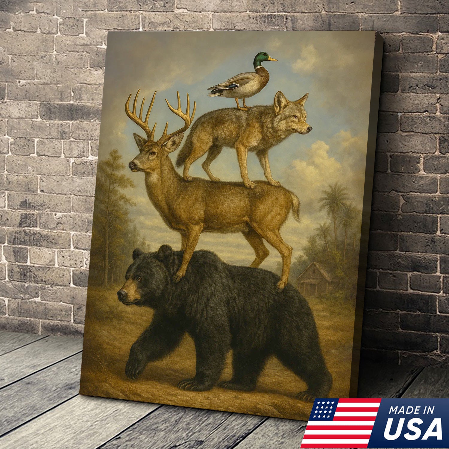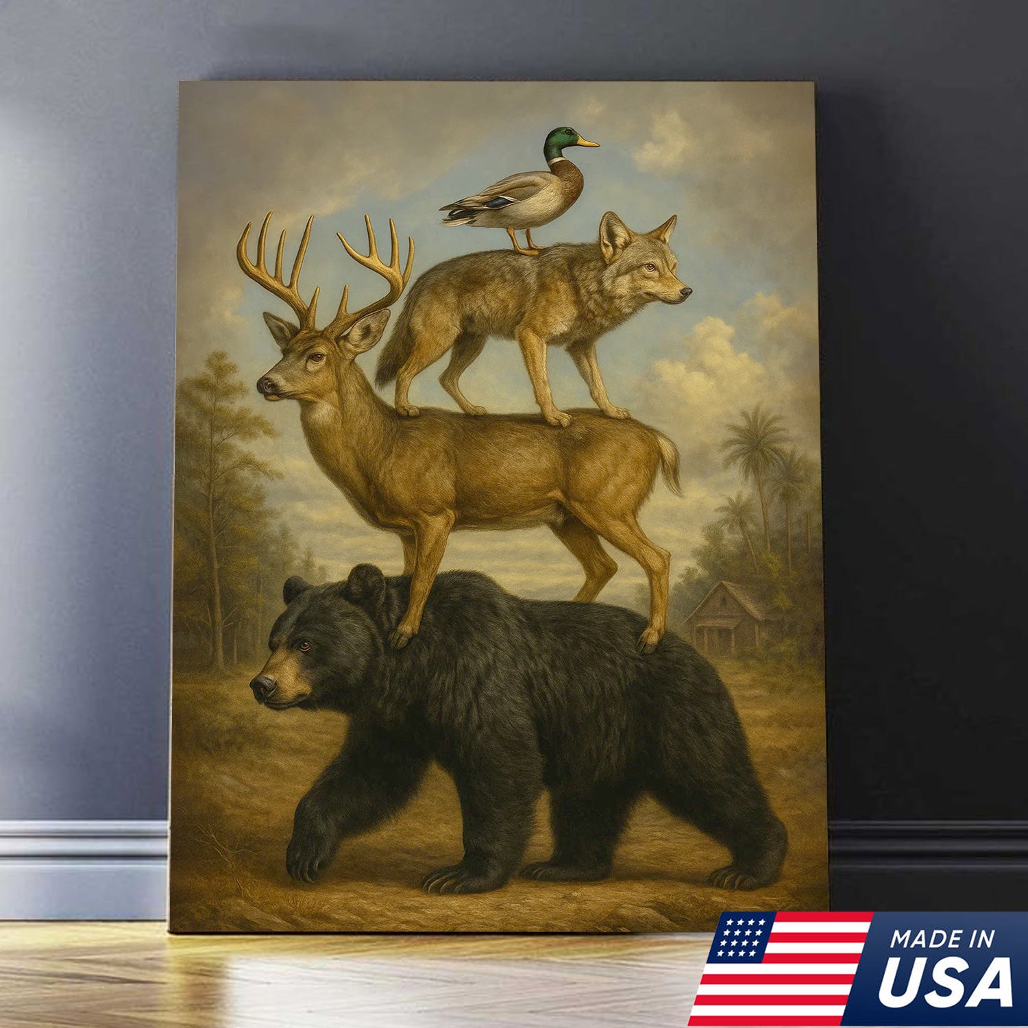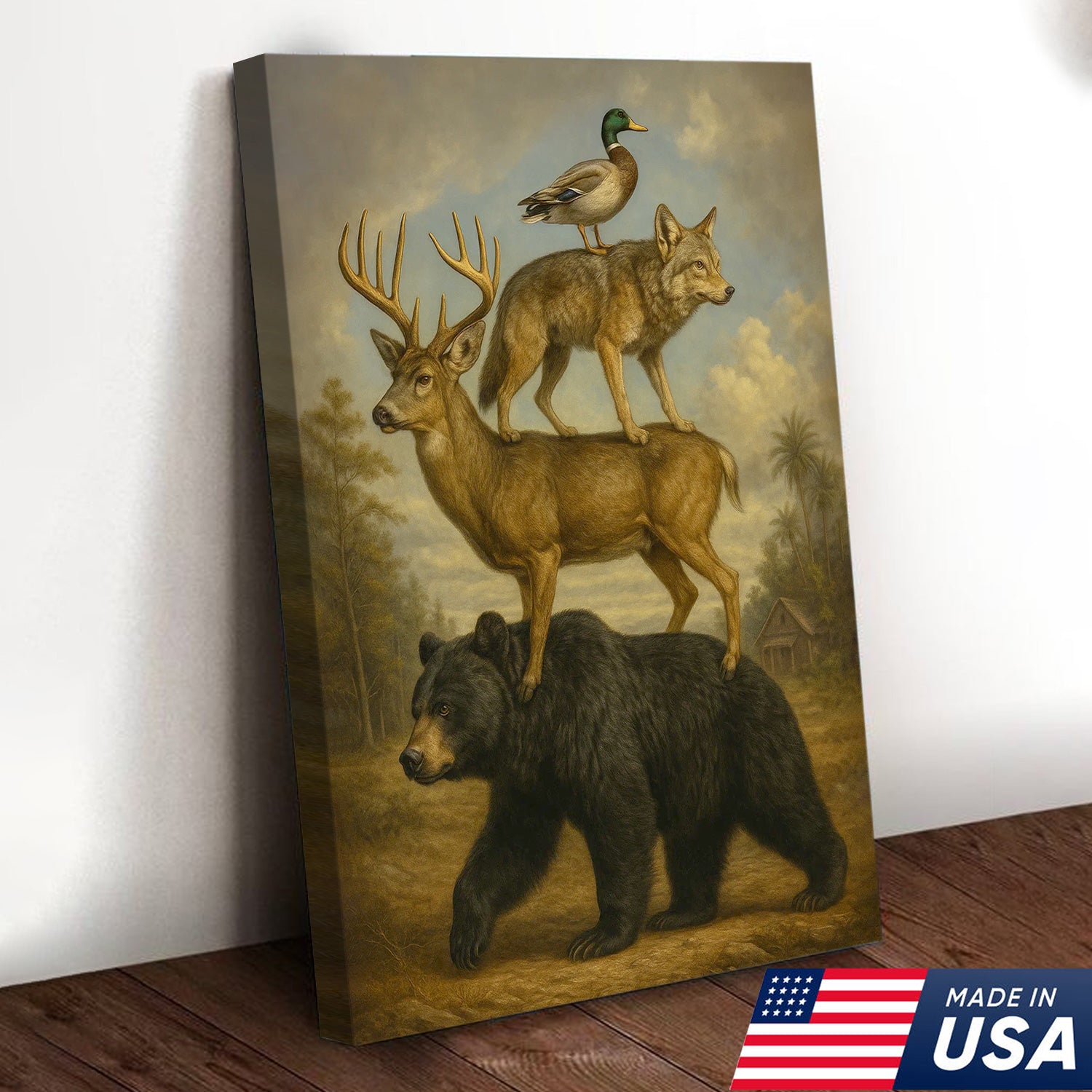 Epic Wildlife Stacking Canvas Wall Art – Bear, Deer, Coyote & Duck – Rustic Hunting Cabin Decor